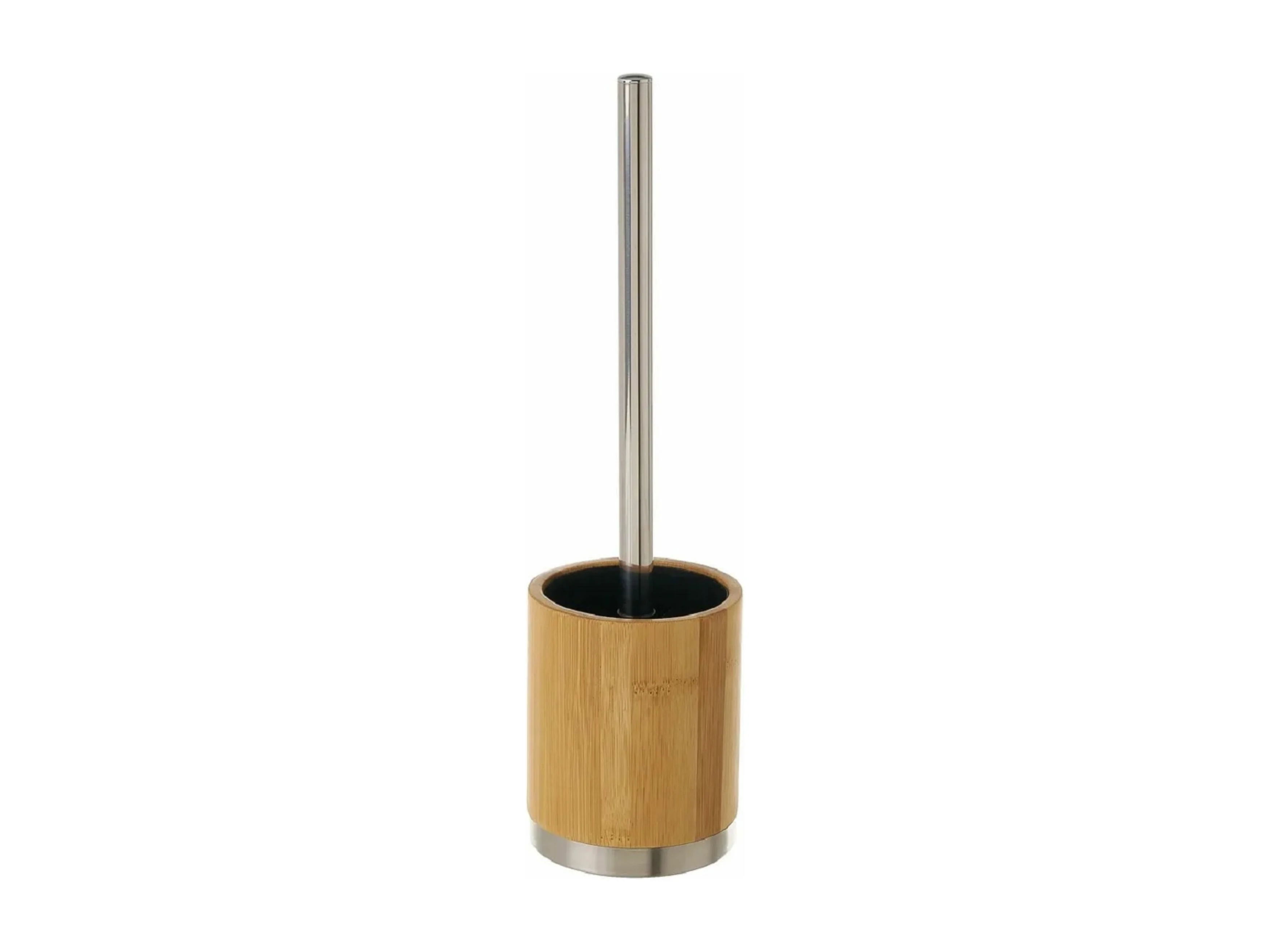 Brosse de toilette WC avec support, porte brosse WC en bambou/acier inoxydable coloris naturel/noir - Diamètre 9.5 x Hauteur 35 cm
