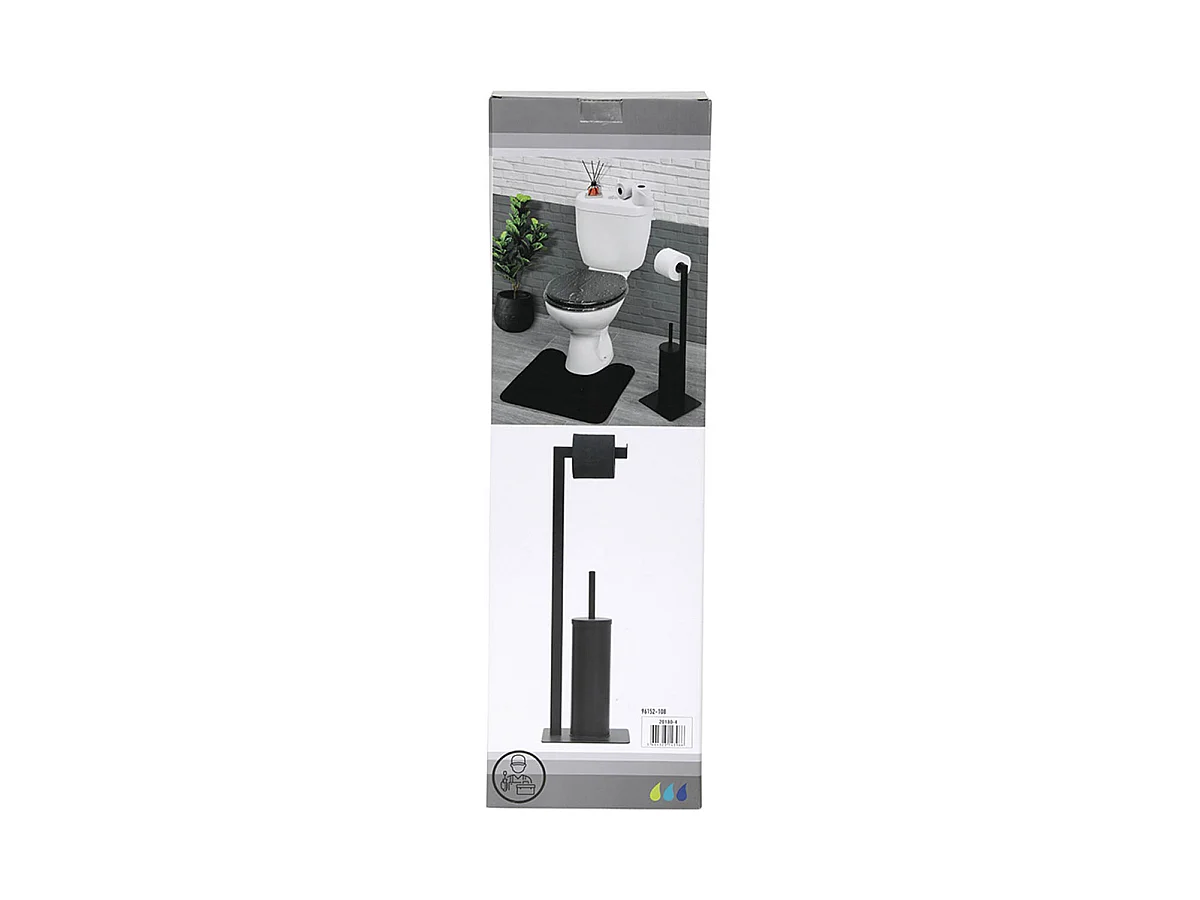Brosse WC avec support et Dérouleur Papier toilette en métal noir H 68 cm