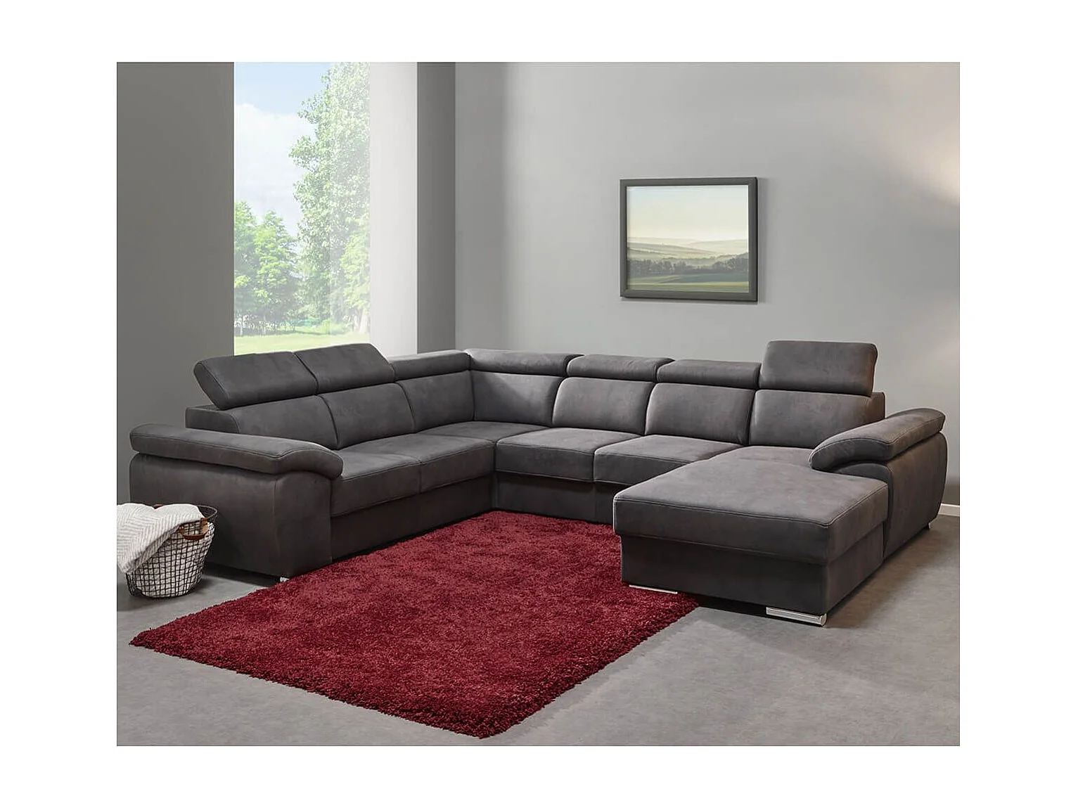 BRUGES - Canapé d'Angle Gauche 7 Places Gris