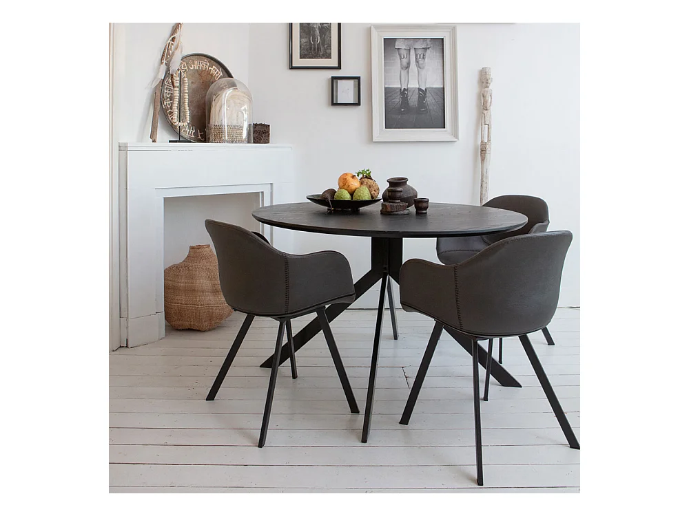 Bruno - Table à manger 4 personnes ronde en bois et métal - Couleur - Noir