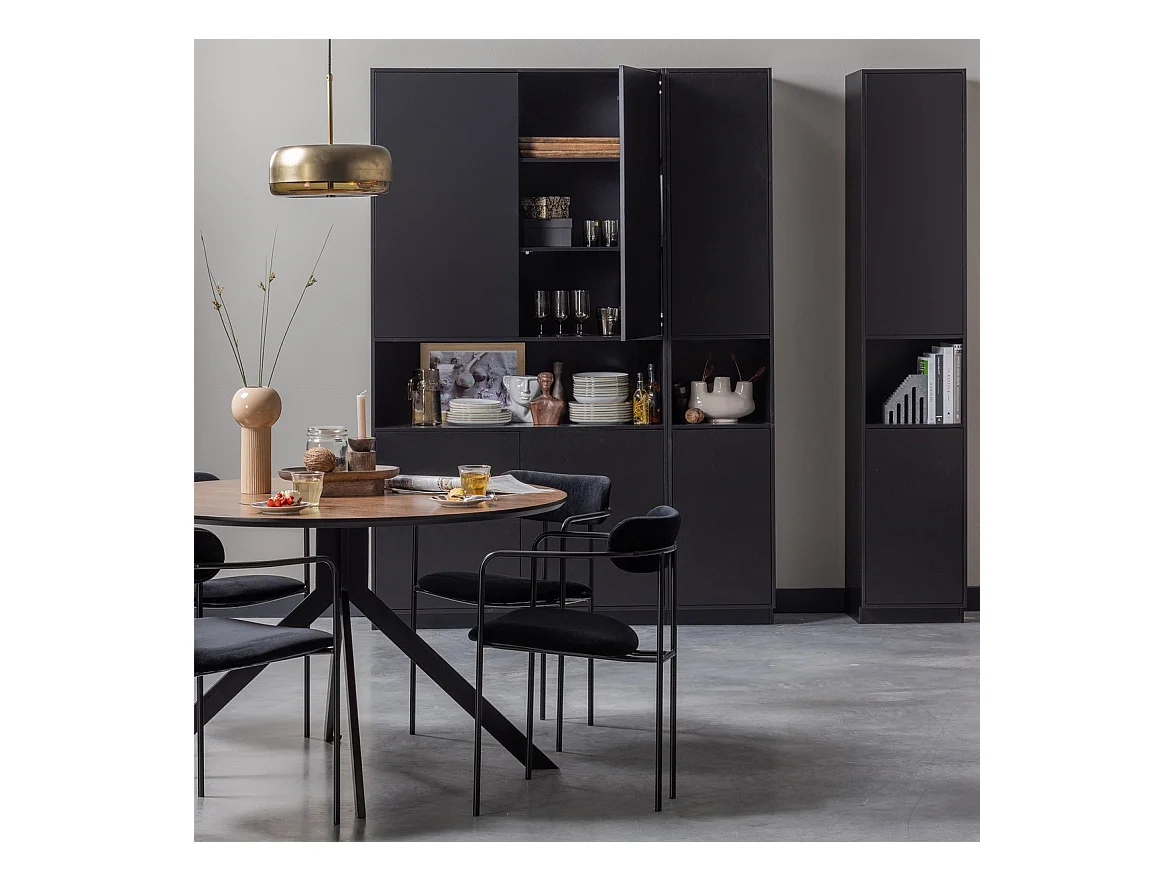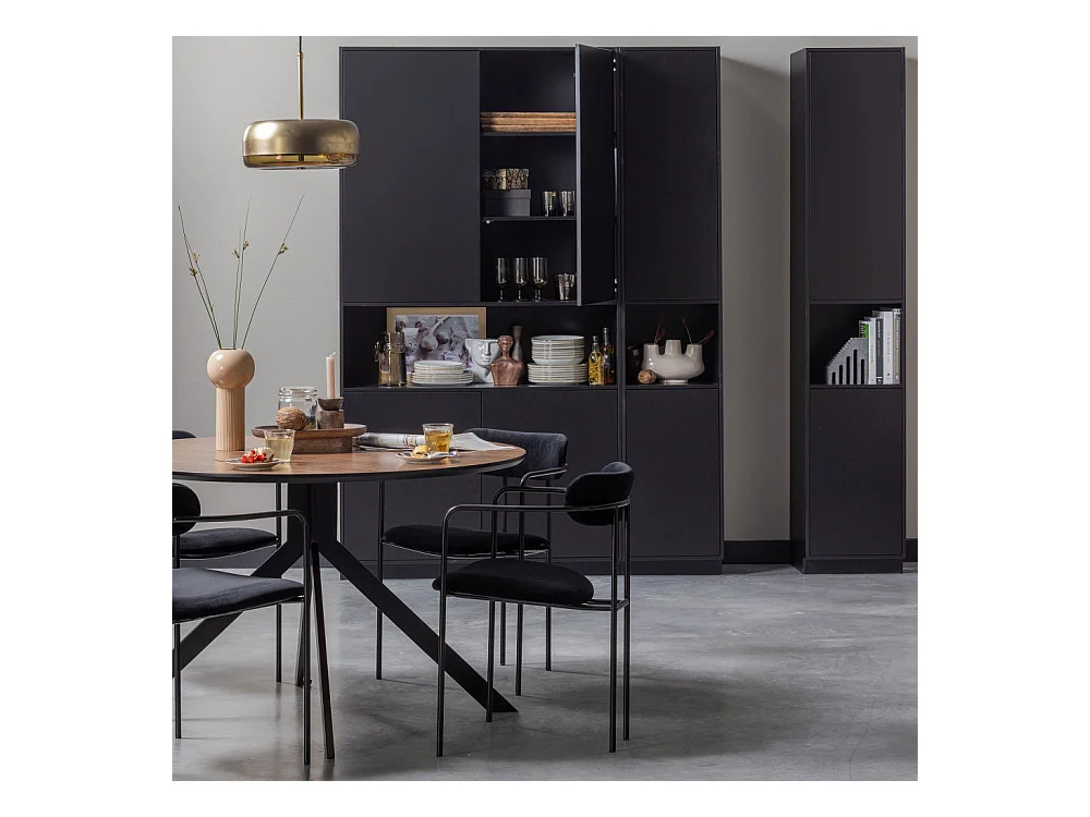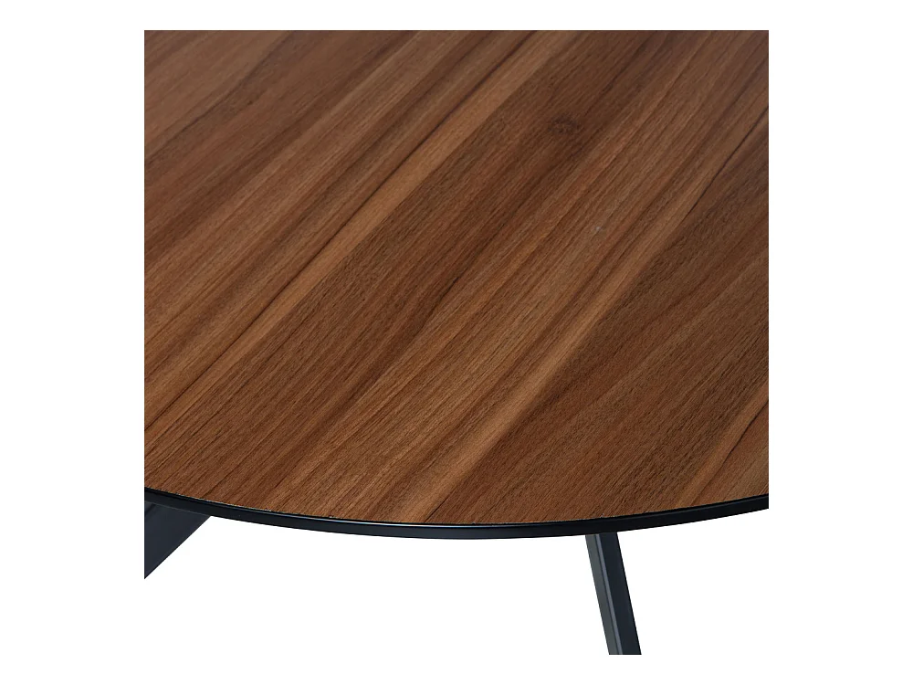 BRUNO - Table ronde en Noyer avec structure en acier noir