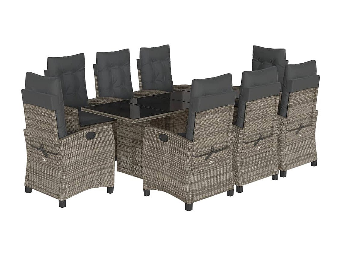 Bryndra Ensemble à manger de jardin 9 pcs coussins gris résine tressée