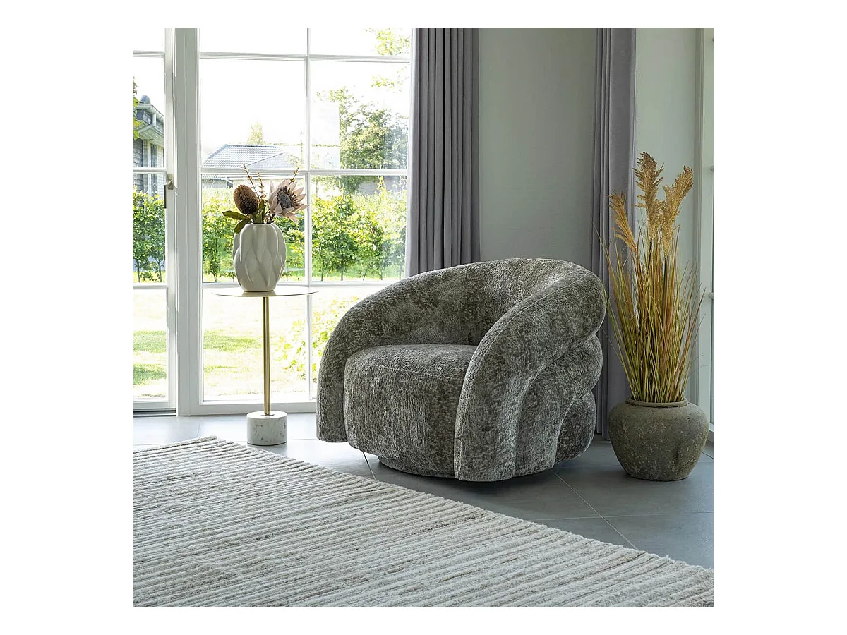 BUBBLE - Fauteuil Tissu Velours Texturé Beige Pivotant