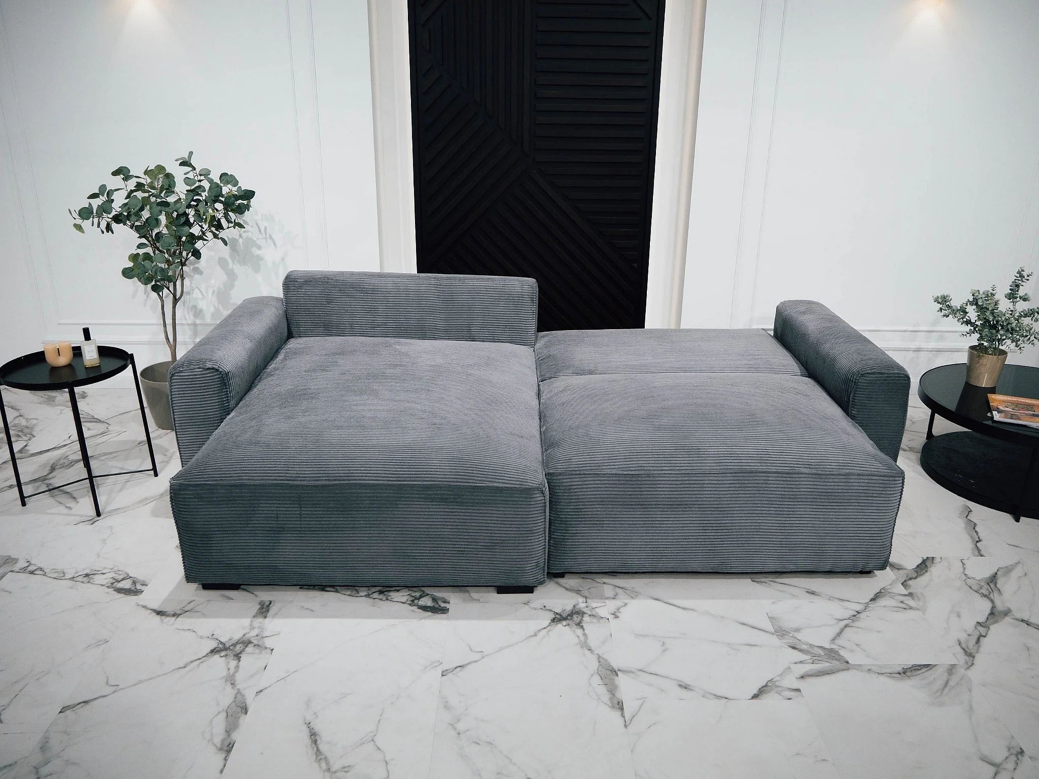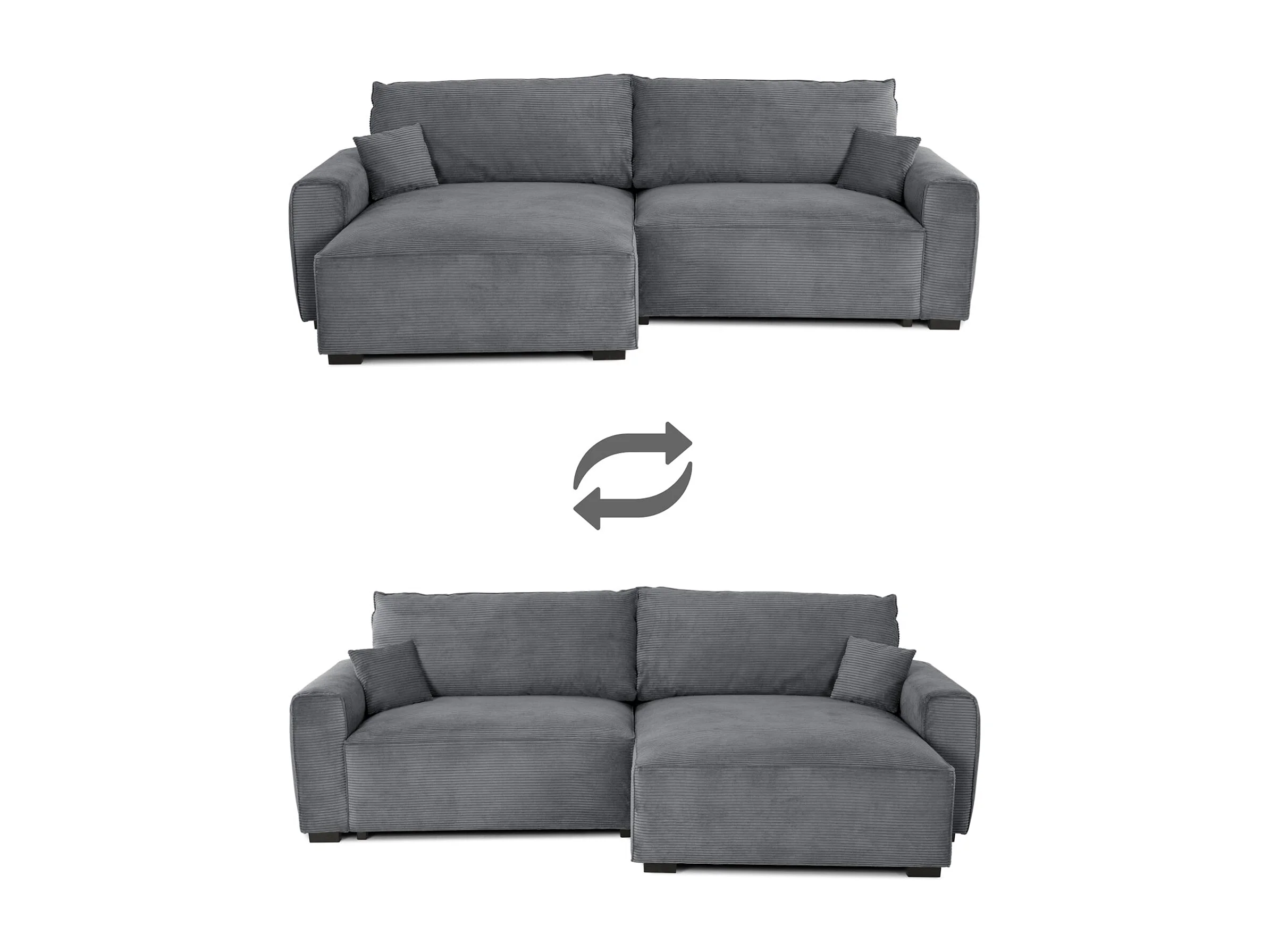 BUDWING Canapé-Lit Chaise Longue Lauren Gris Pur - 3 Places - 269x158x96 cm