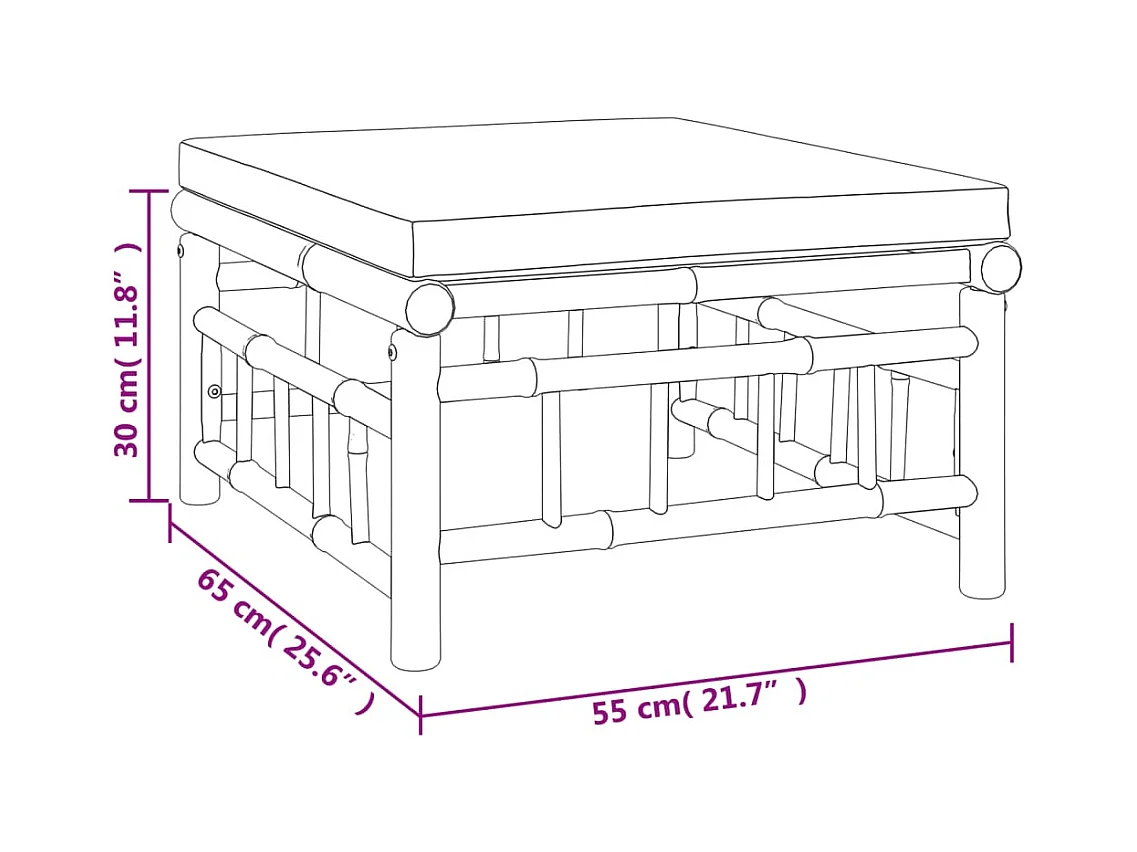 Arinda Repose-pied de jardin avec coussin blanc crème Bambou