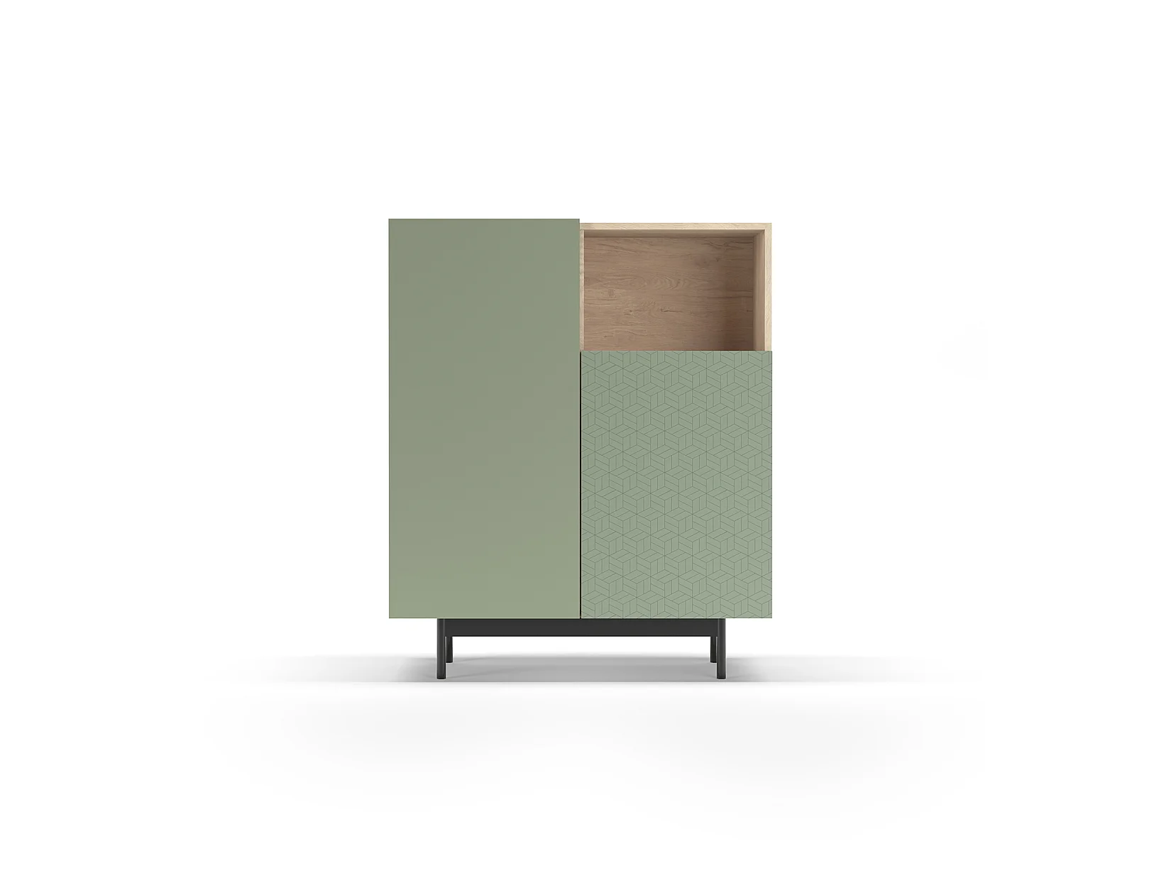 Buffet 1 niche - H110cm x L90cm x L34cm - chêne clair et vert - Printed Sérig
