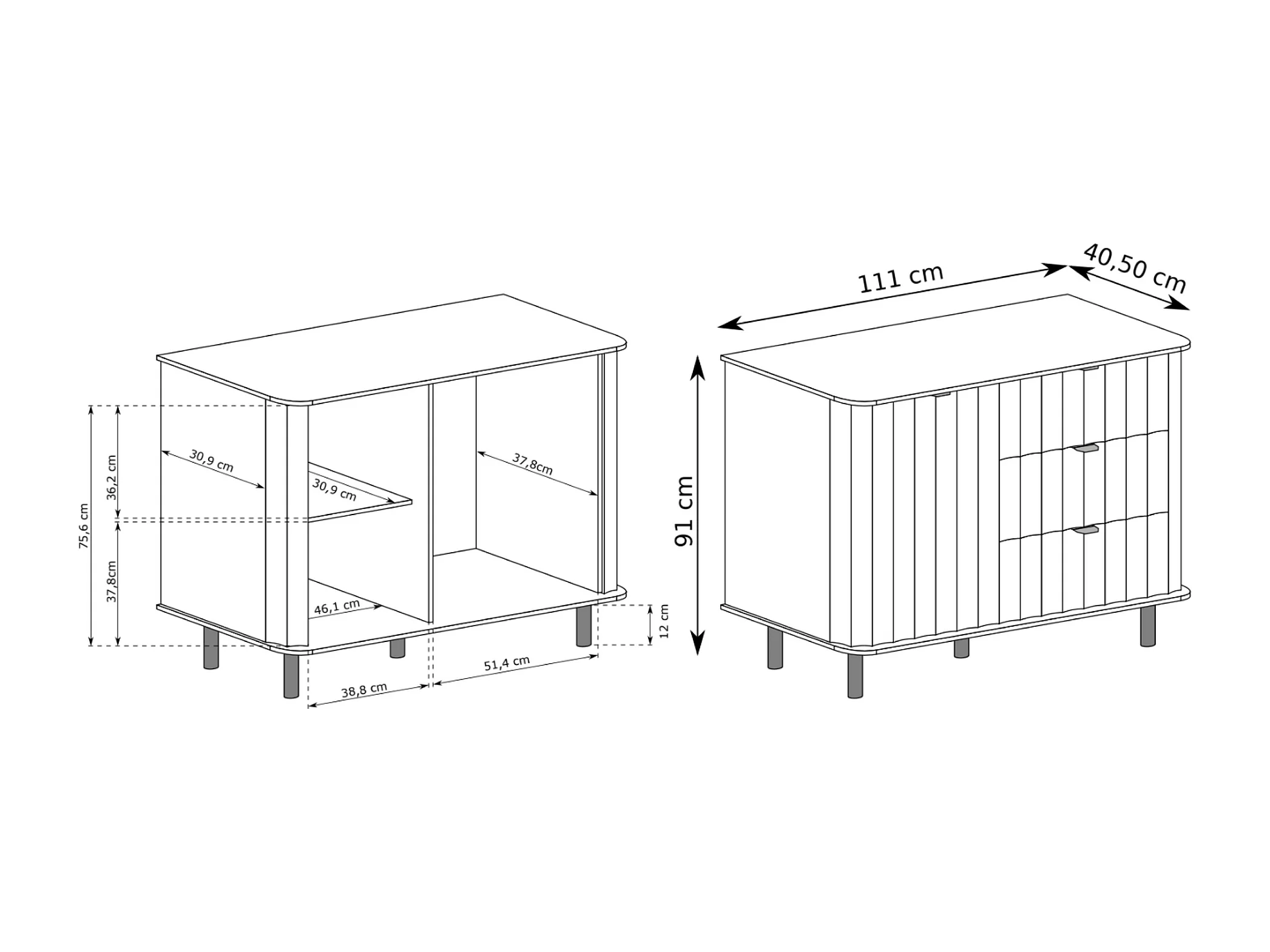 Buffet 1 porte avec trois tiroirs – 111 cm – gris cachemire – NOVADO