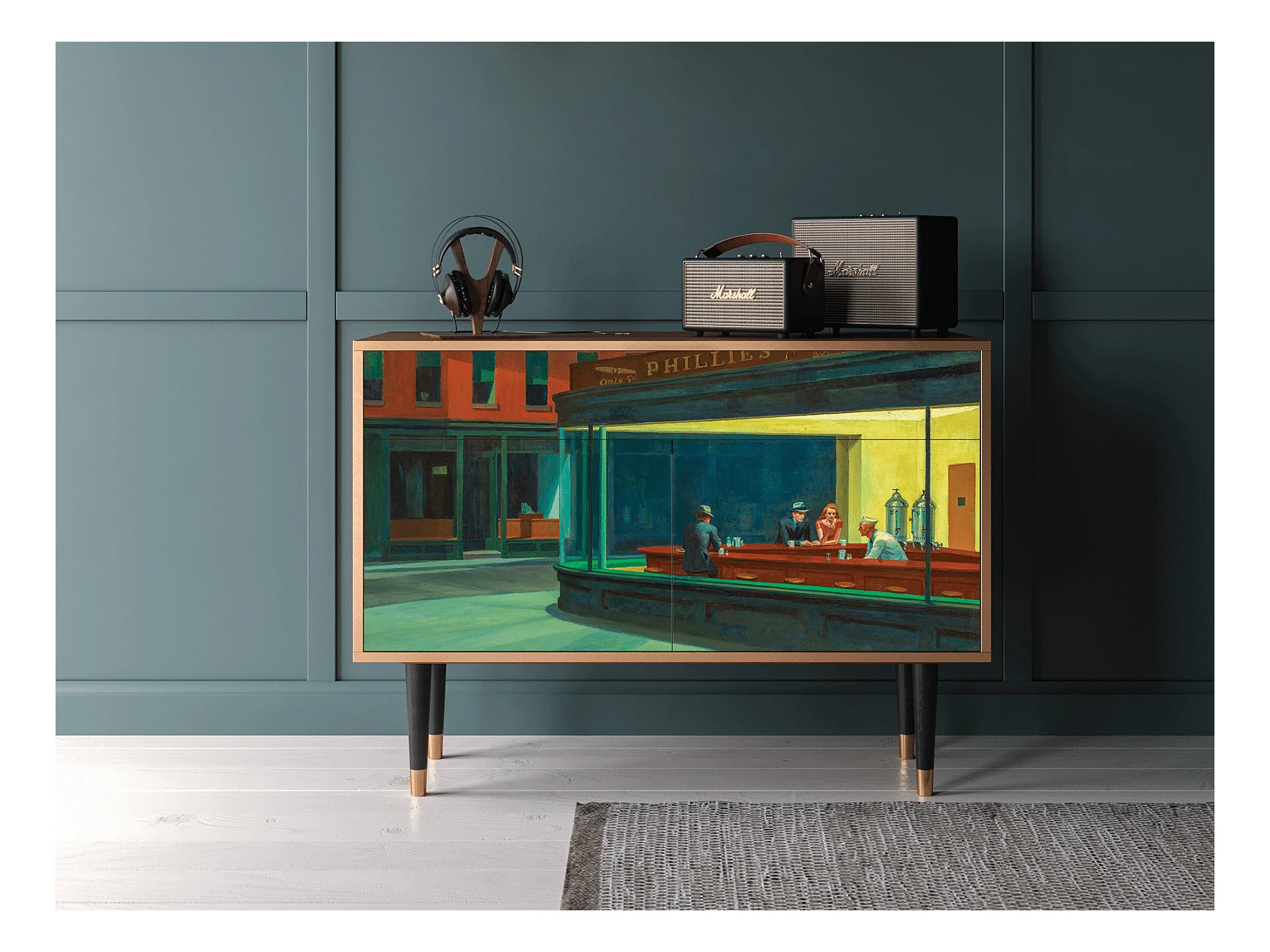 Buffet - 115x85x48 cm - BS4 - Nighthawks by Hopper, Noyer