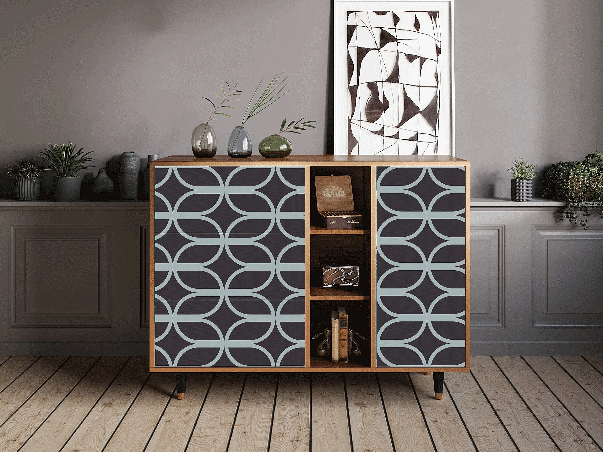 Buffet - 125x98x48 cm - BS2 - Braided Blue, Noyer