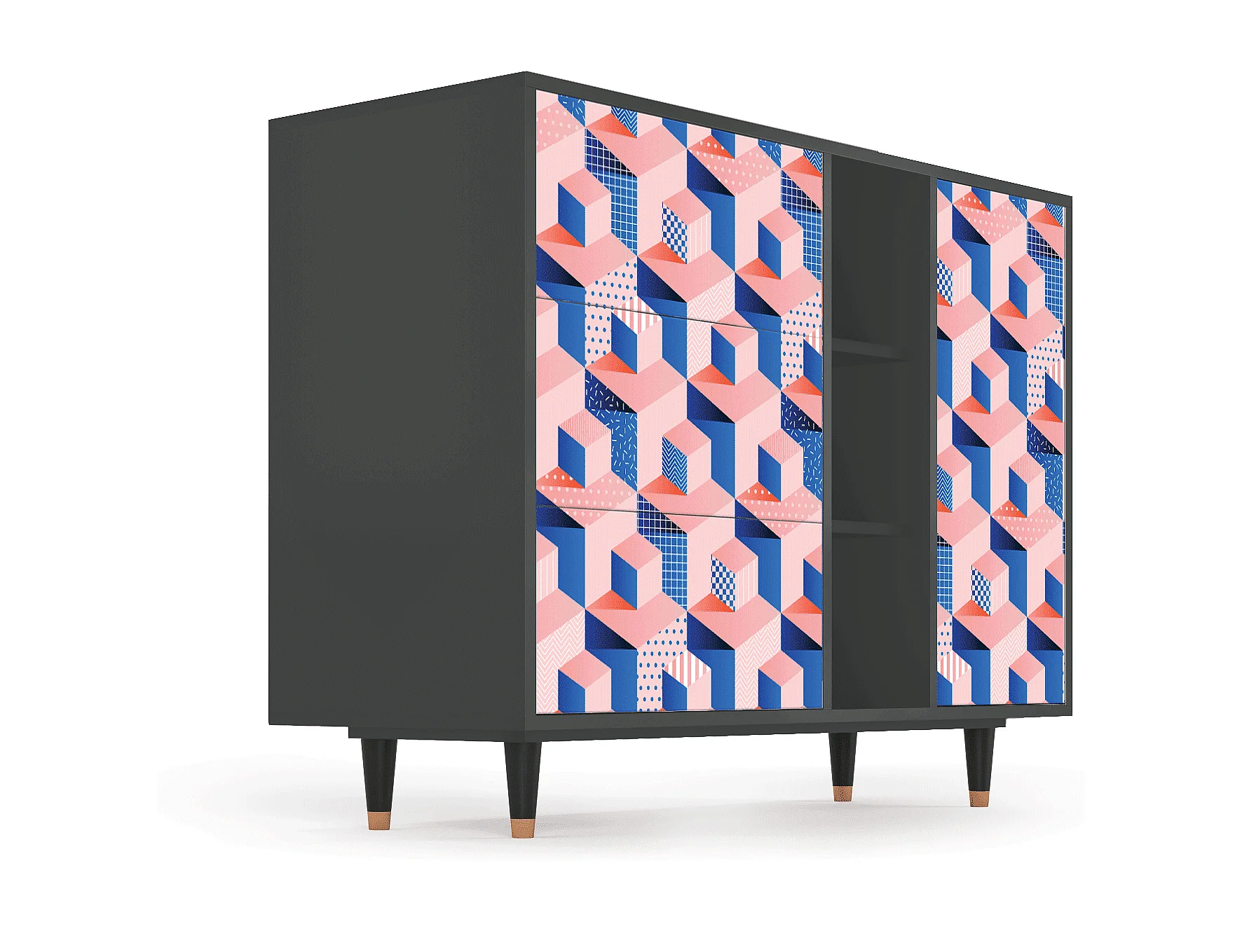 Buffet - 125x98x48 cm - BS2 - Pinky Squares, Anthracite