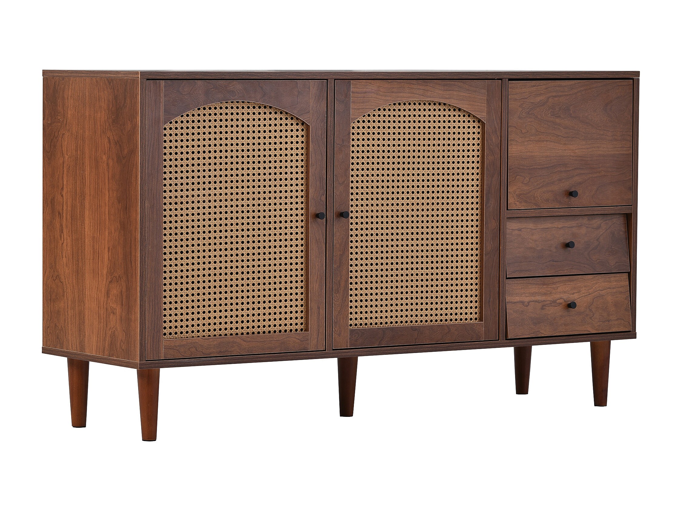 Buffet 130x75,5x40 cm avec insert en rotin - avec 3 portes et 2tiroirs irréguliers - naturel