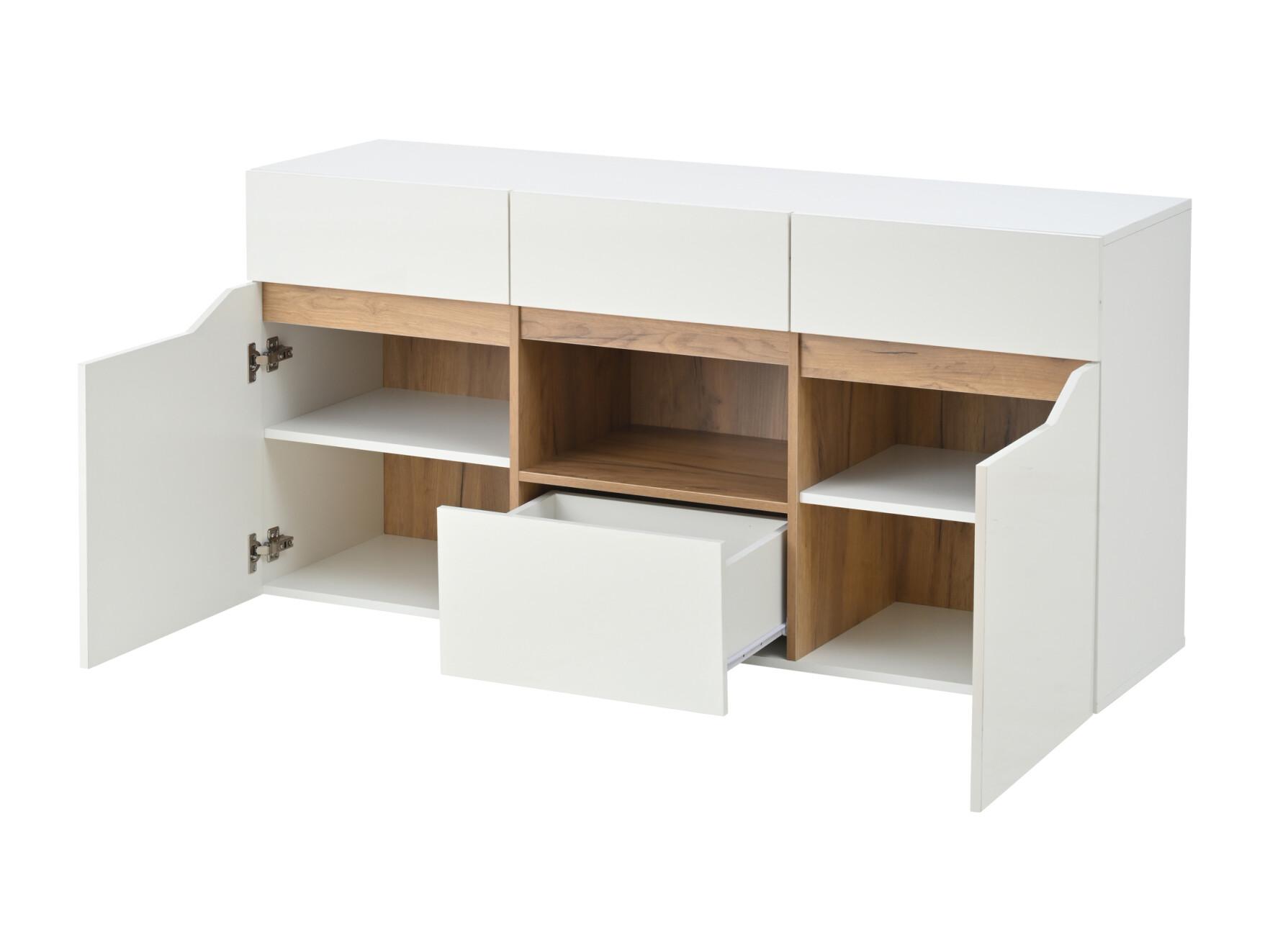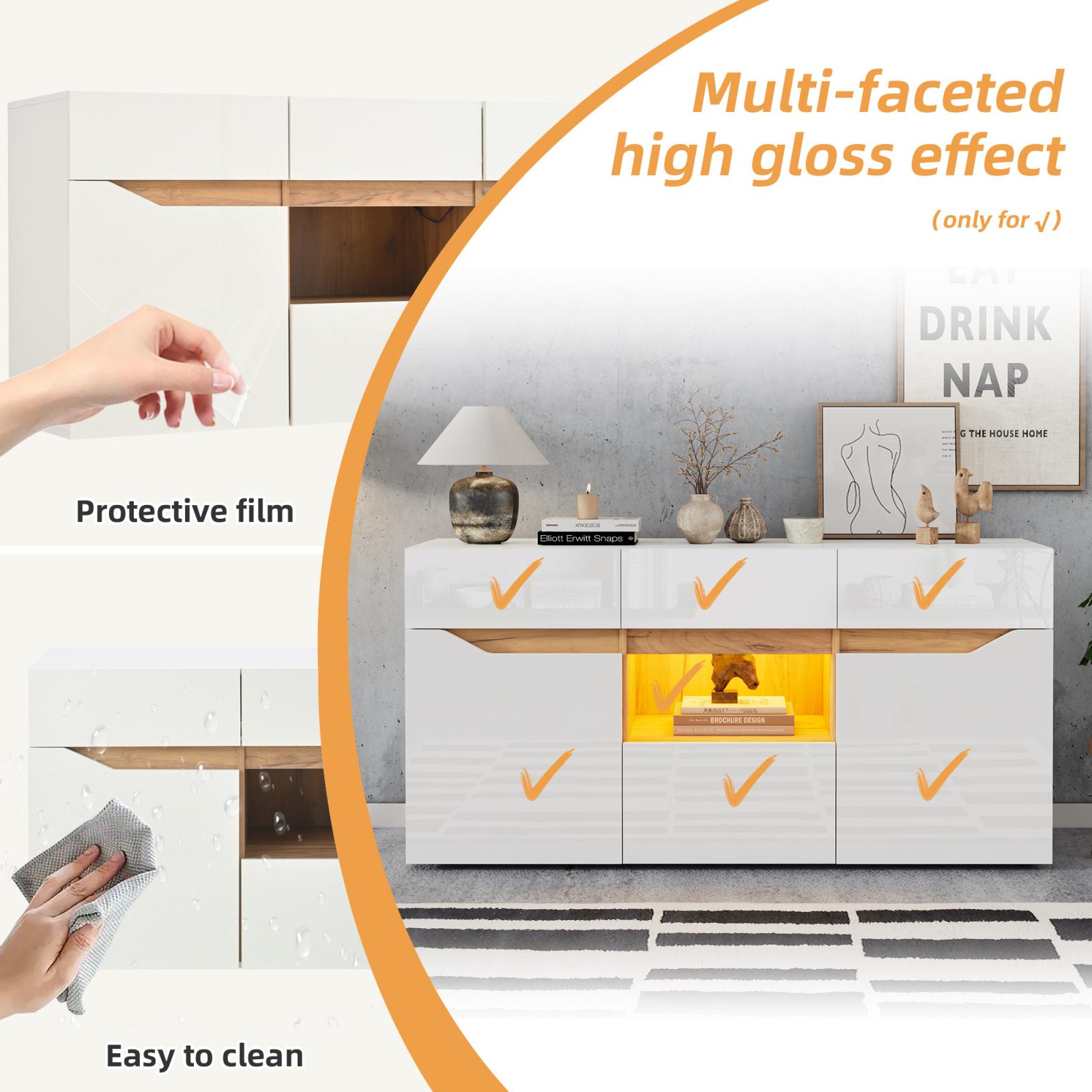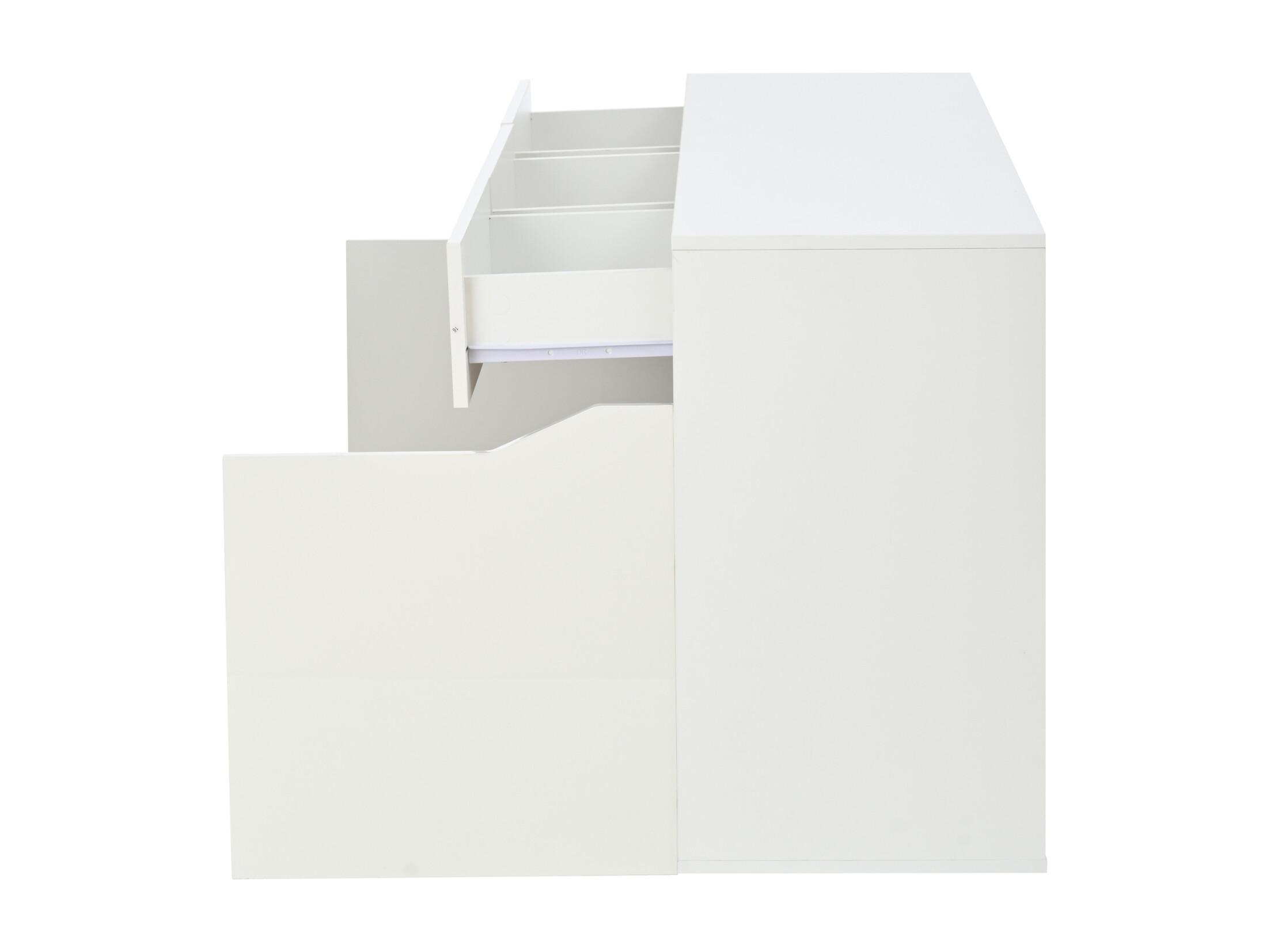 Buffet 140 x 40 x 70 cm, avec 4 tiroirs et 2 portes, LED, pour salon, salle à manger, blanc