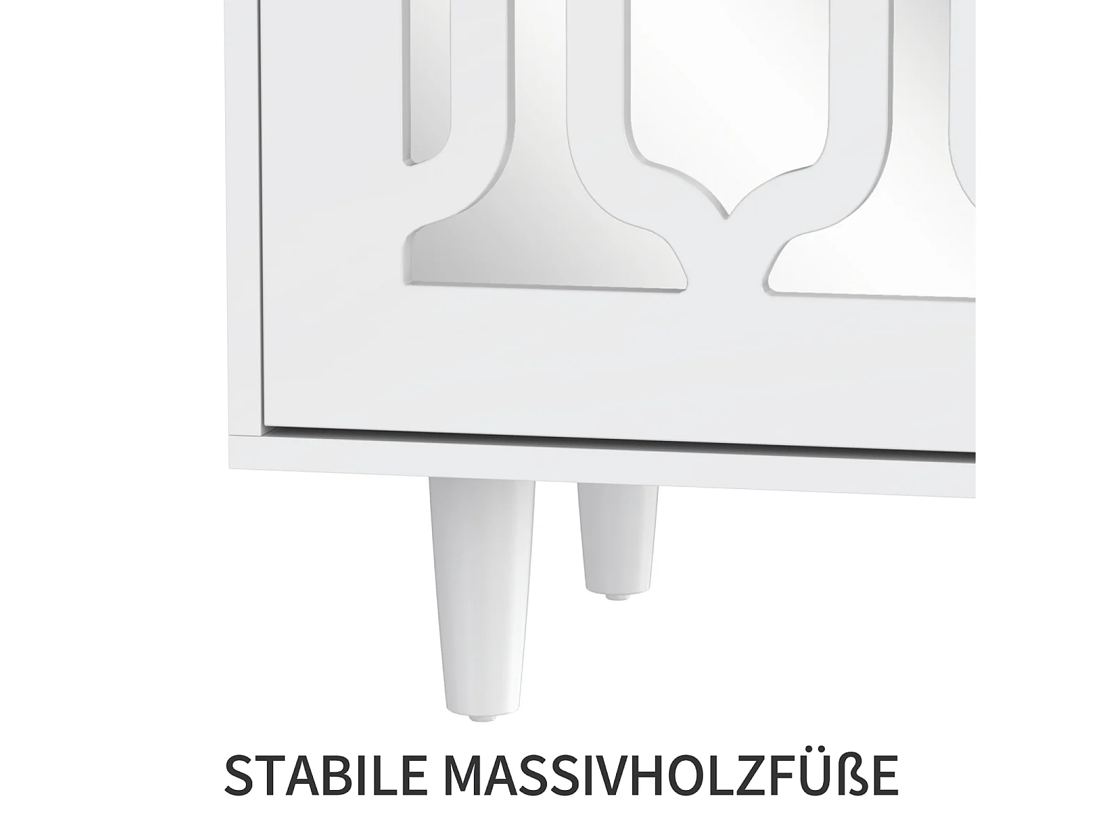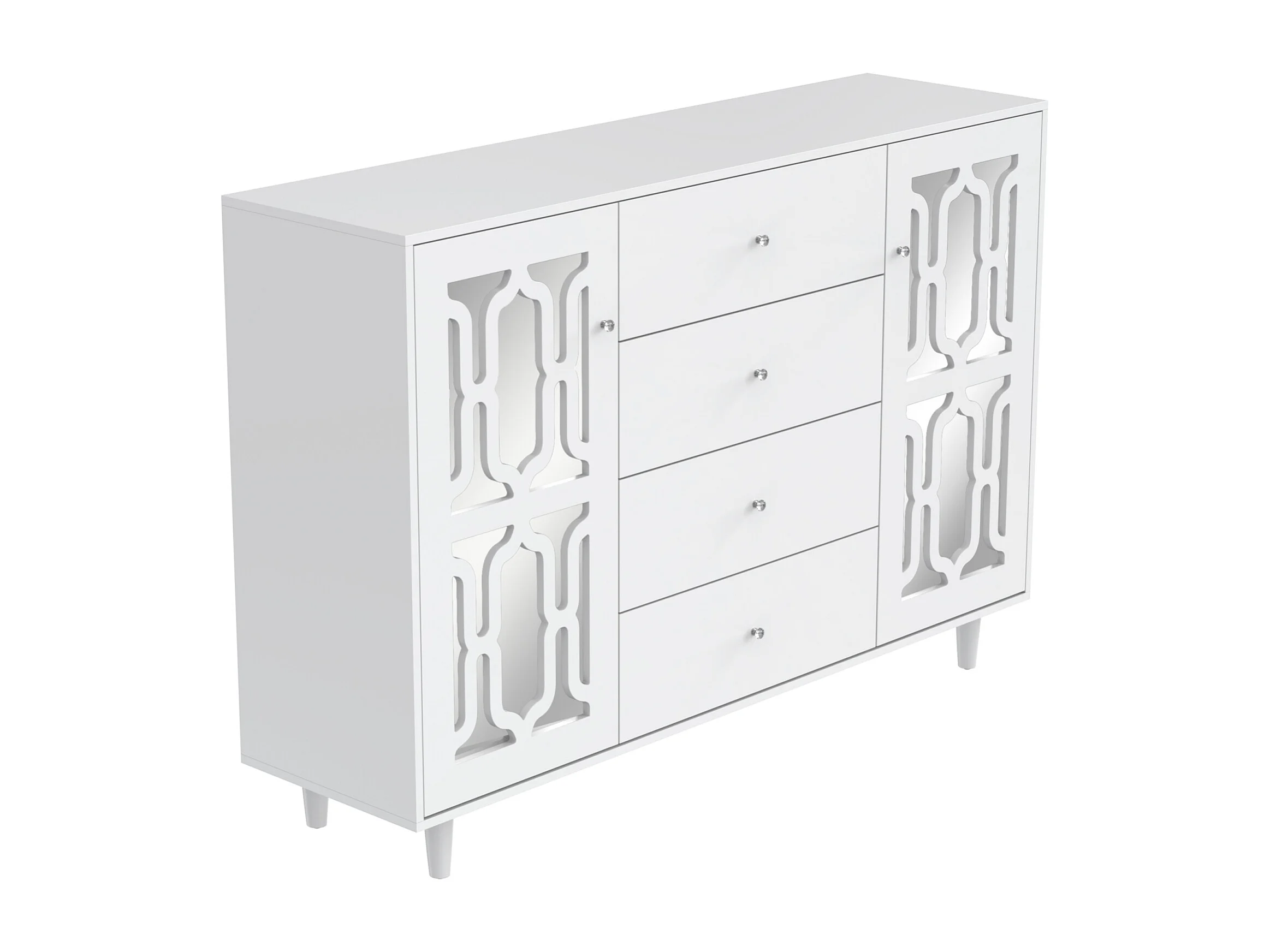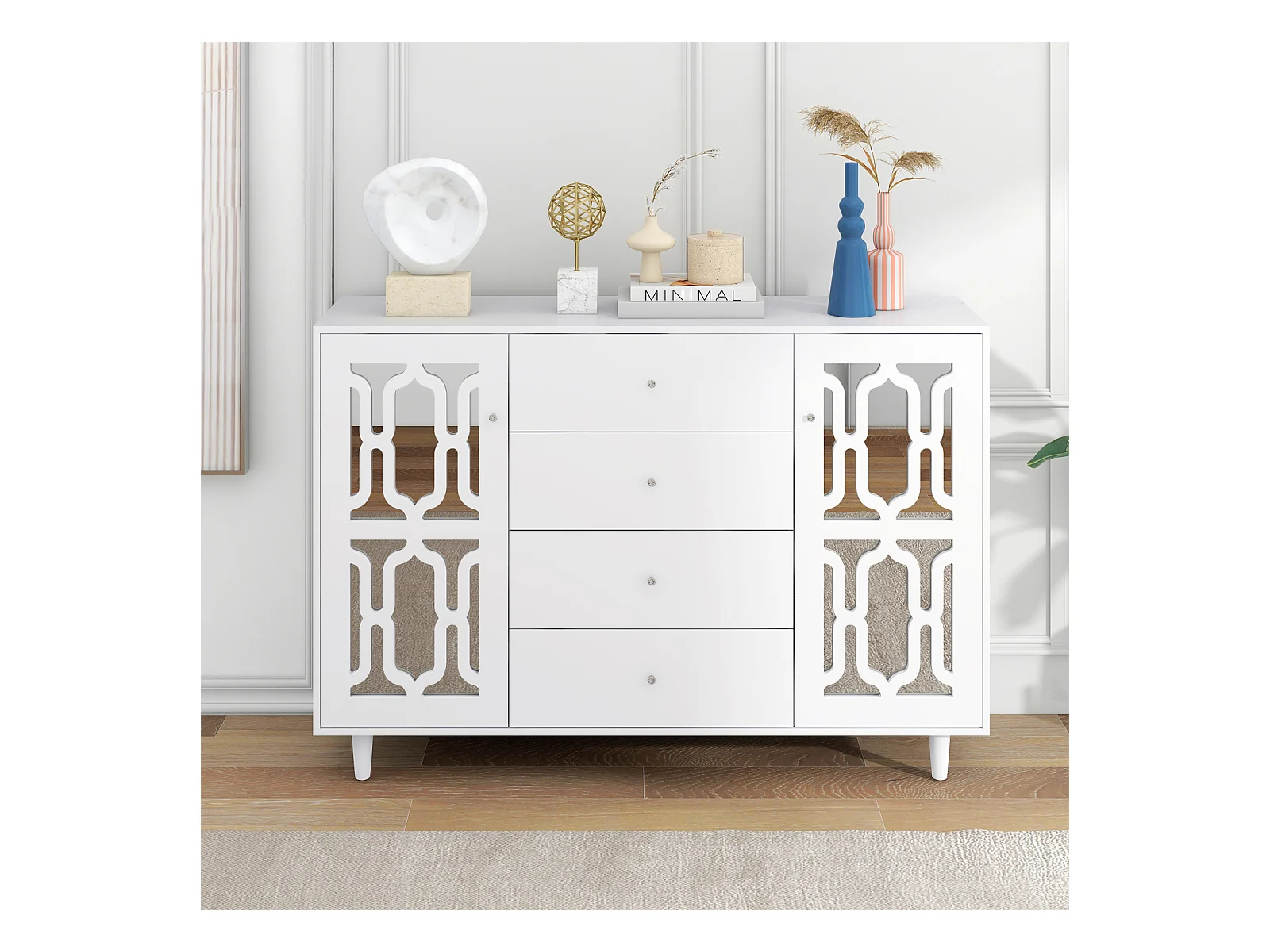 Buffet 147.5x40x102cm, avec 2 portes et 4 tiroirs, porte avec verre pour salon, salle à manger, blanc