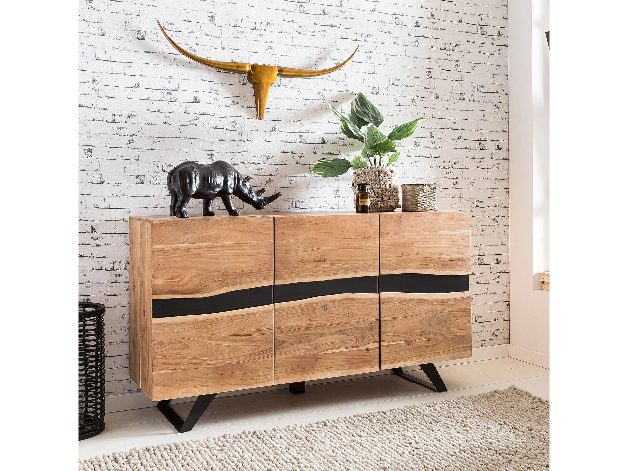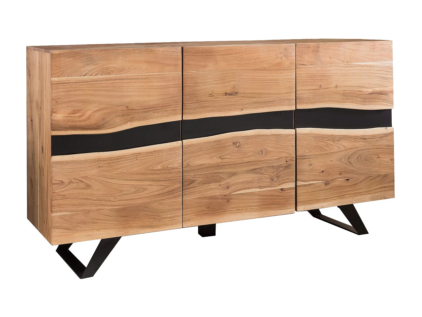 Buffet 148 cm Bois Massif d’Acacia Commode Armoire Portes Bord d'Arbre