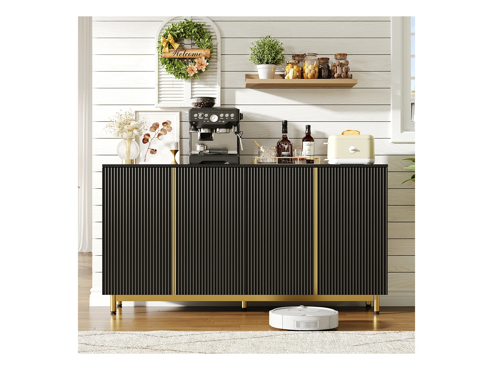 Buffet 150 cm, Armoire Buffet avec Portes cannelées ondulées, Pieds métalliques réglables, Noir