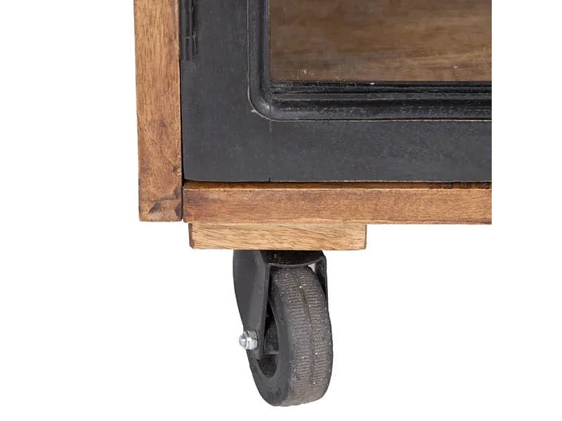 Buffet 160 cm noir naturel en bois de manguier avec portes vitrées sur roulettes AMBIANCE