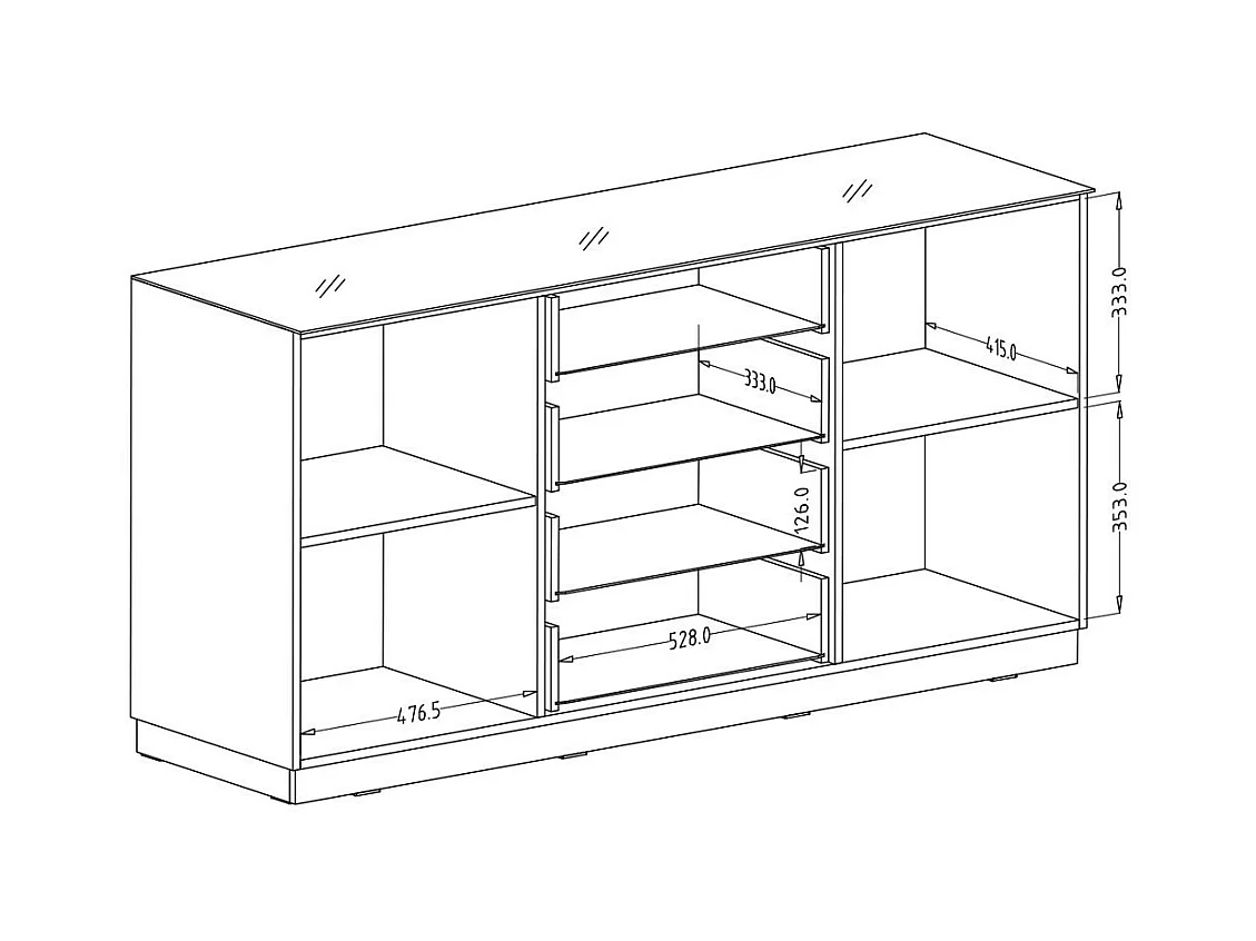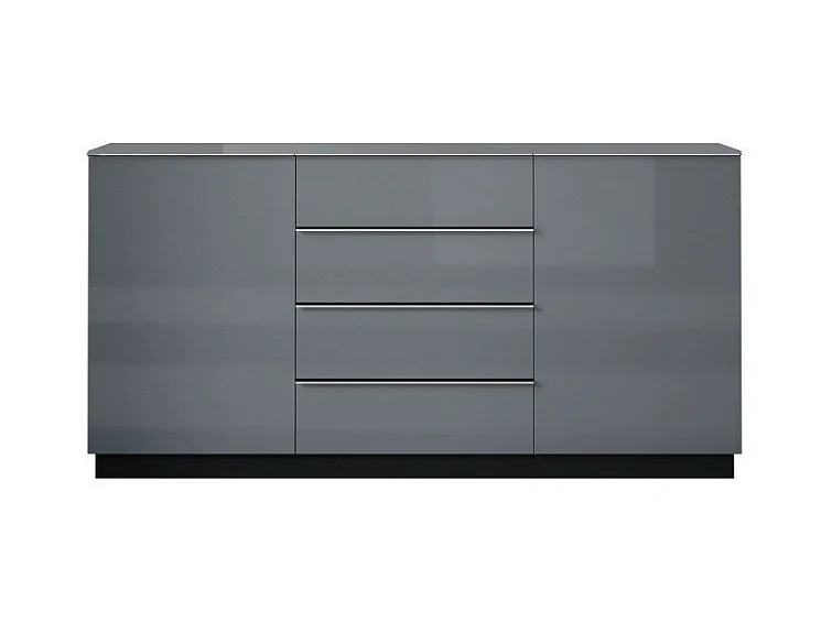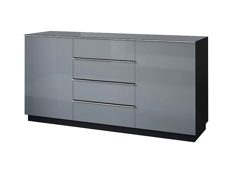 Buffet 160cm 2 portes et 4 tiroirs collection ZANTE. Coloris noir et gris brillant.