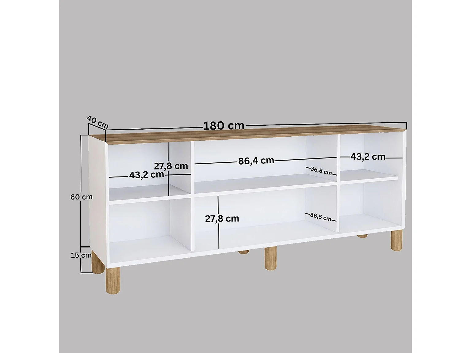 Buffet – 180cm x 75cm x 40cm – Noyer clair – Panneau de particules mélaminé