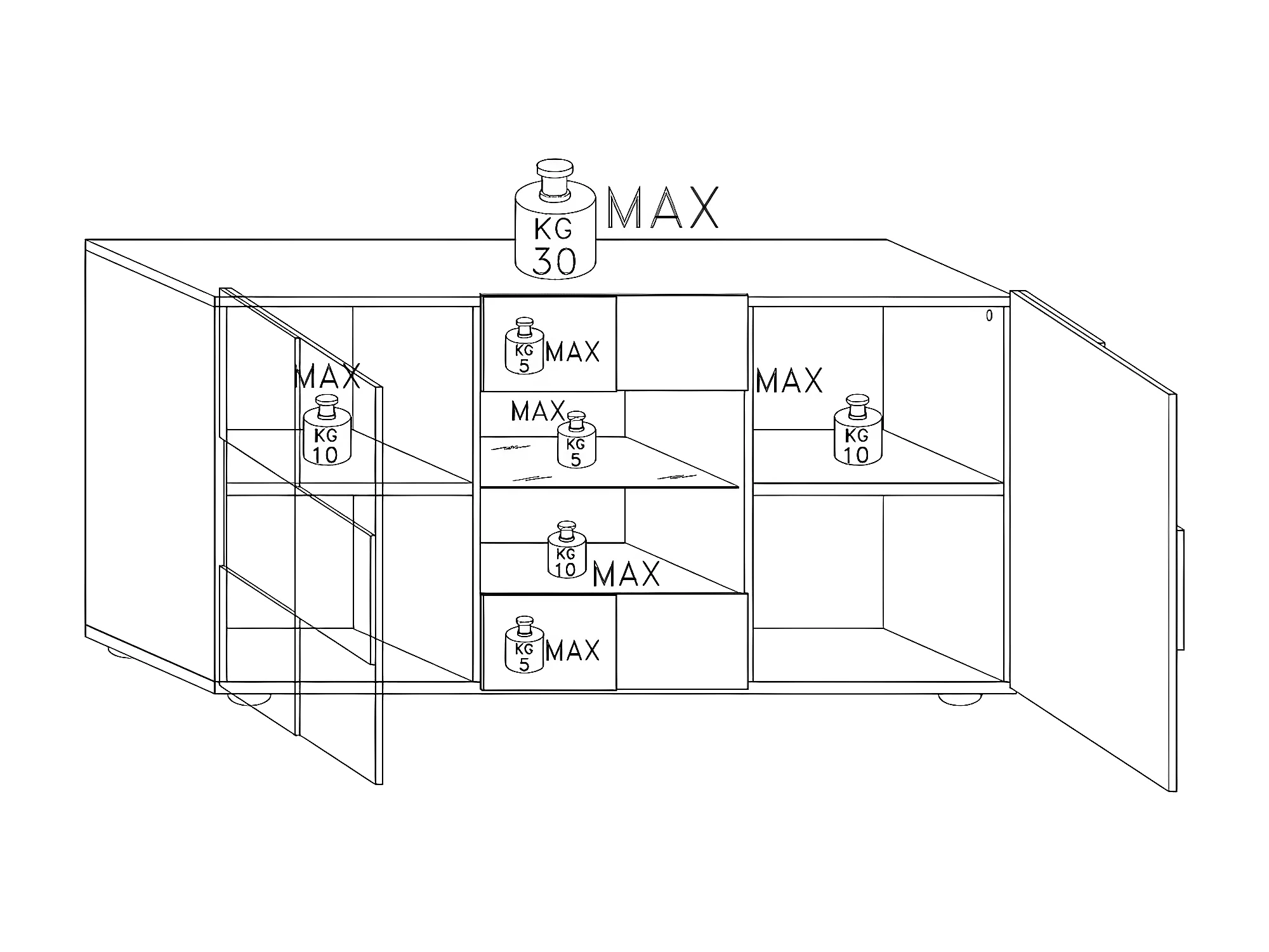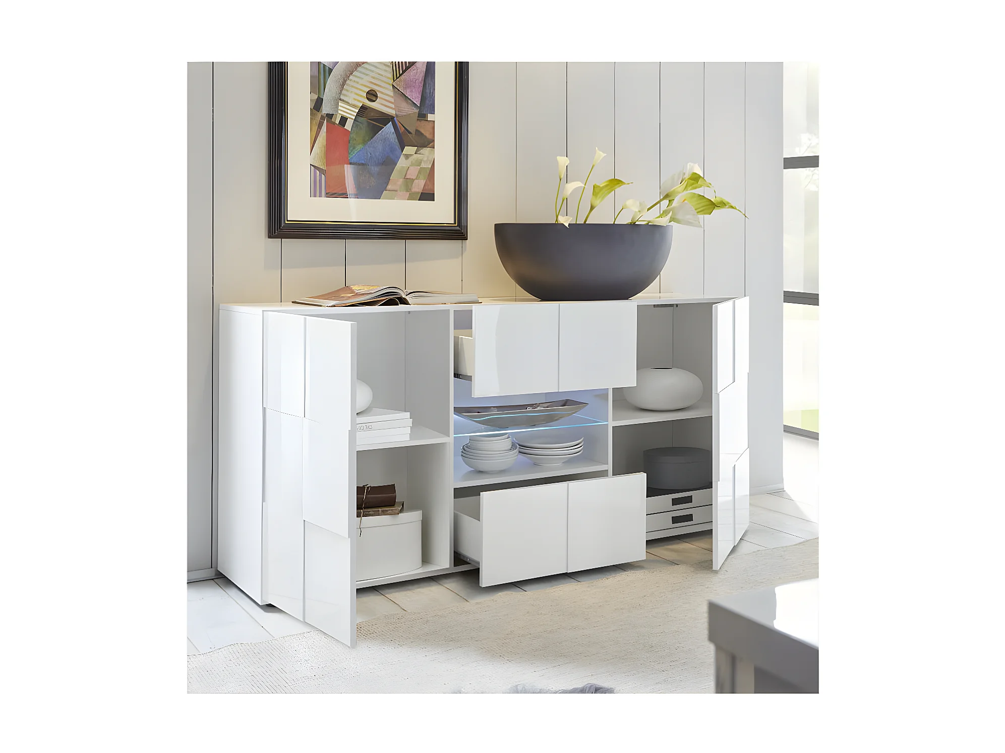Buffet 2 portes 2 tiroirs Laqué Blanc brillant LED's - TICATO