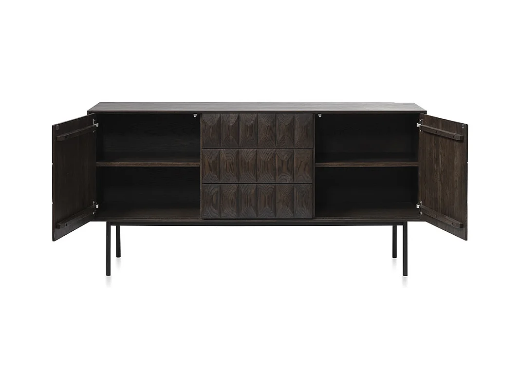 Buffet 2 portes 3 tiroirs 160 cm bois foncé 160x80x45 cm