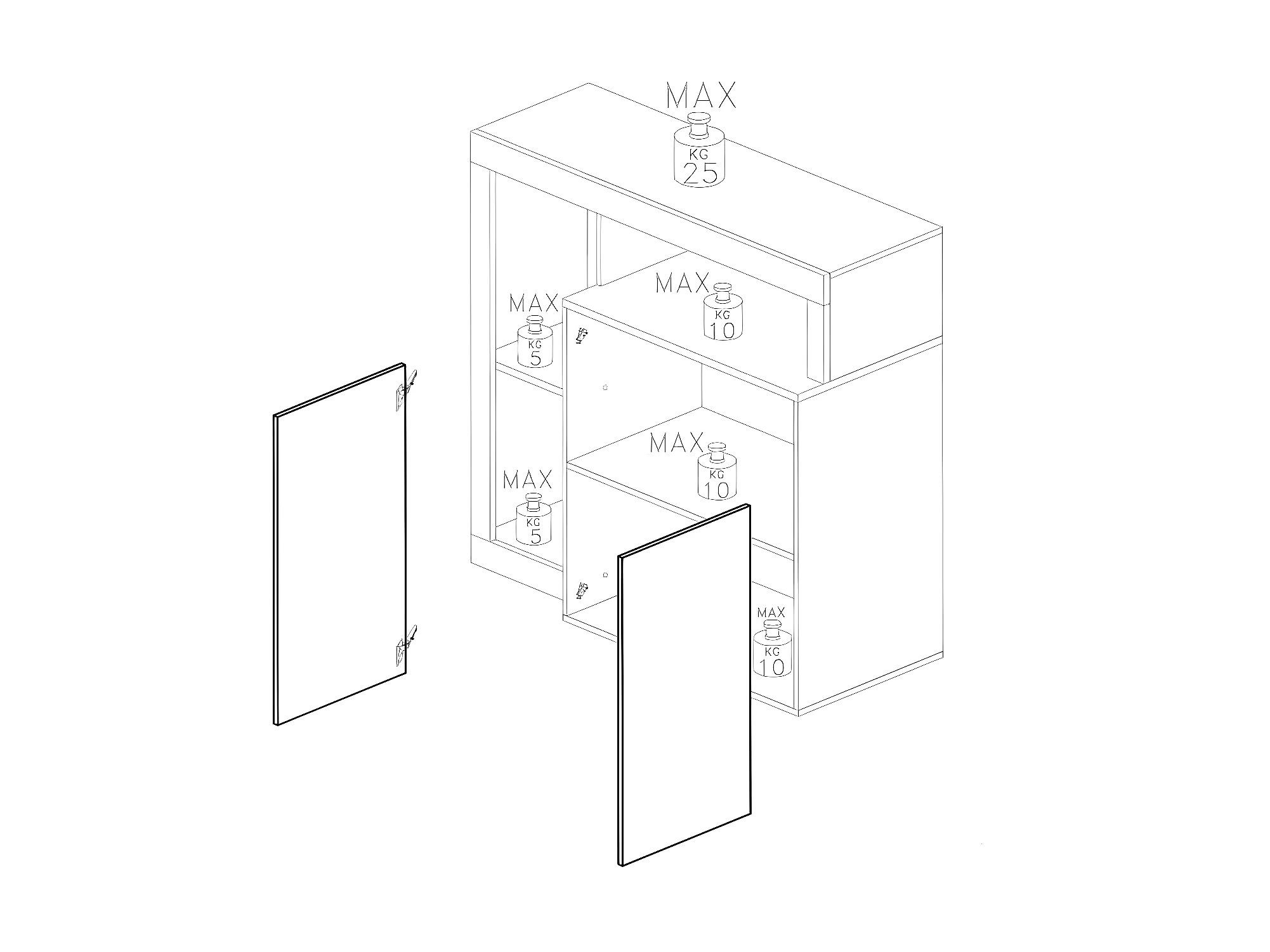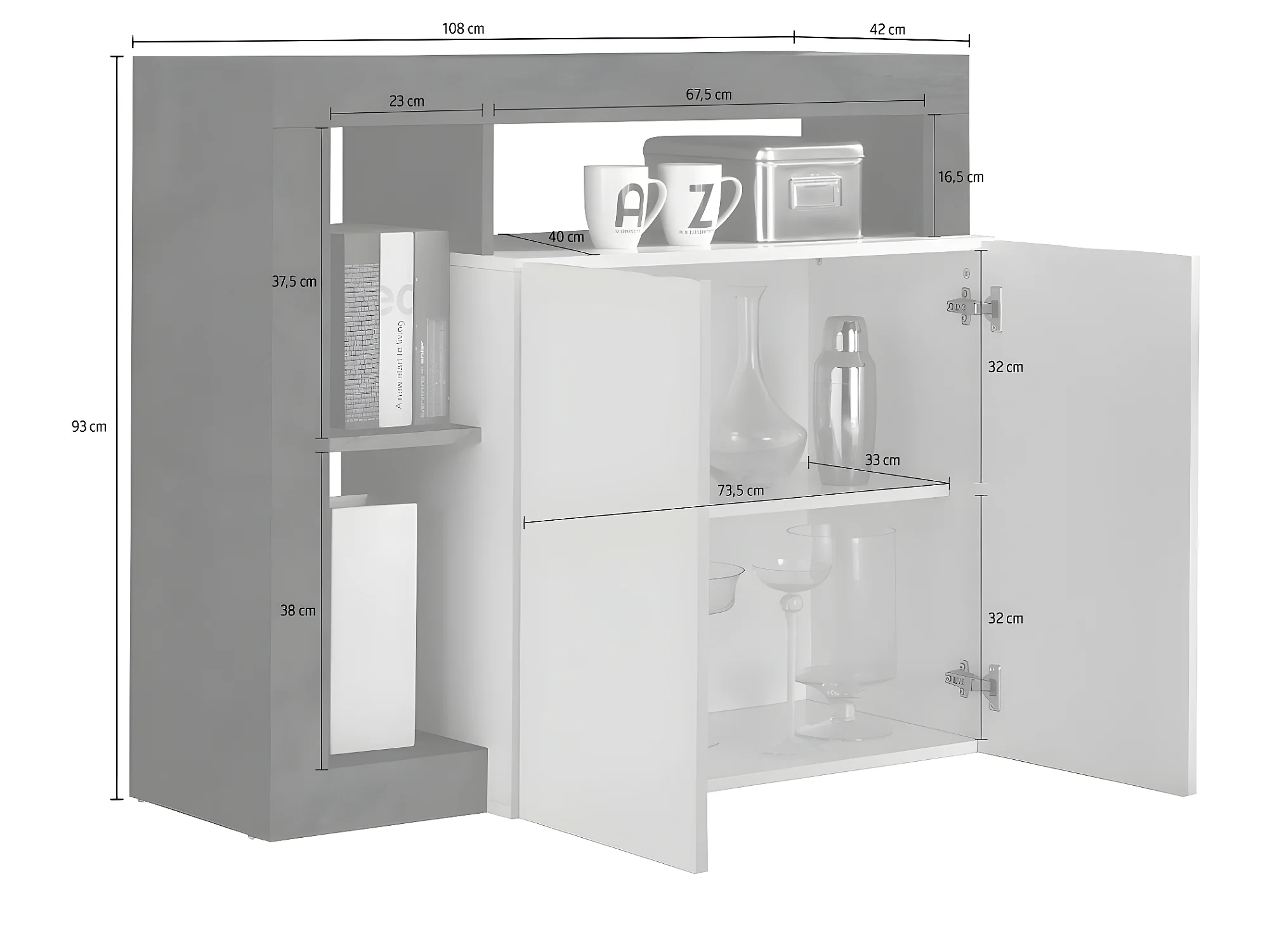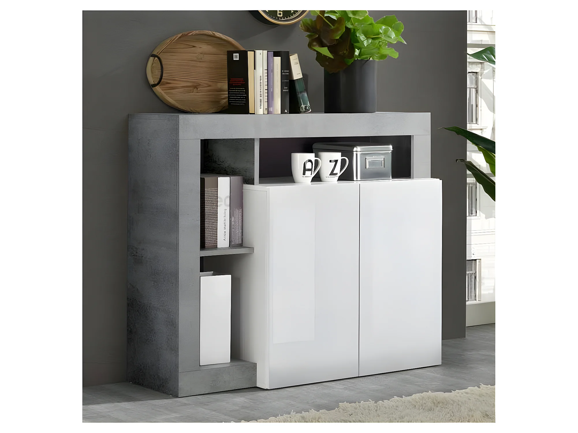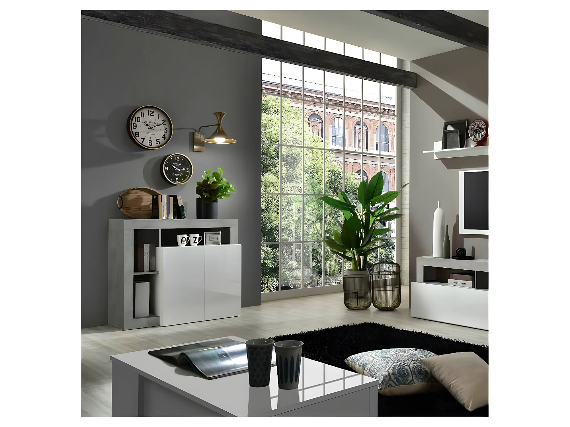 Buffet 2 portes Blanc laqué brillant/Béton ciré clair - ISCHIA