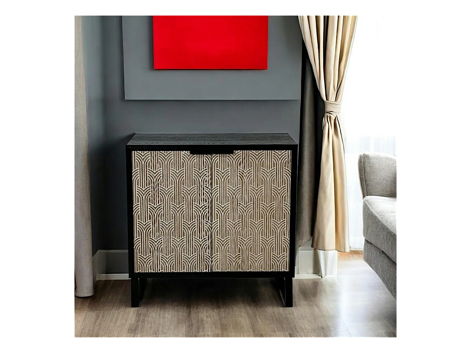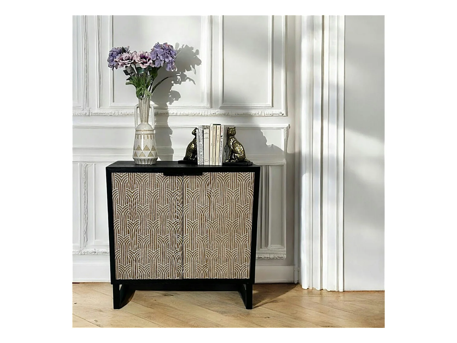 Buffet 2 portes bois et métal décor oriental