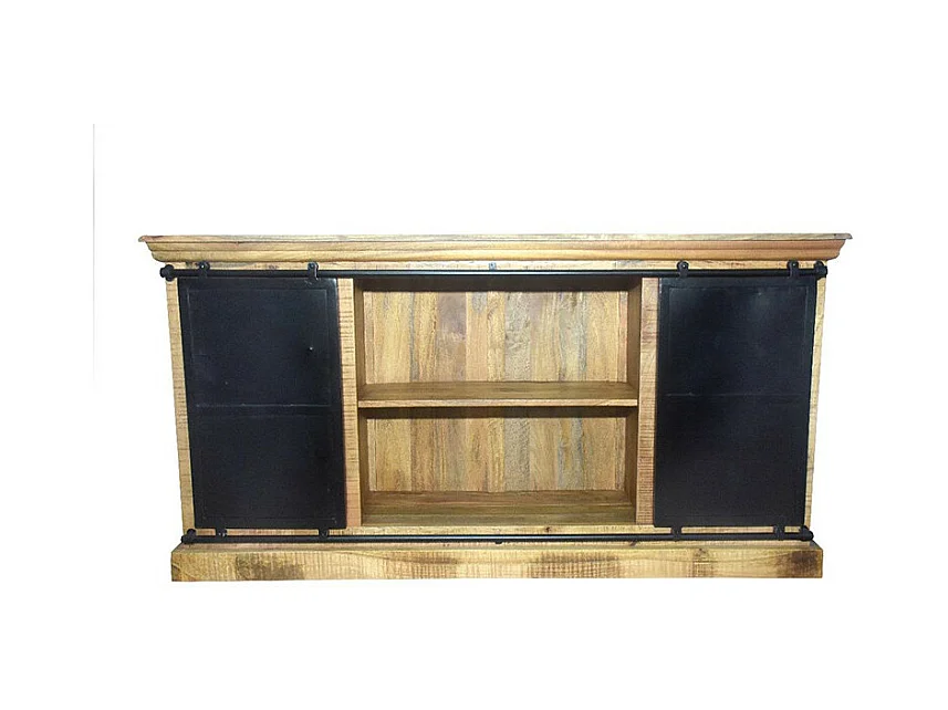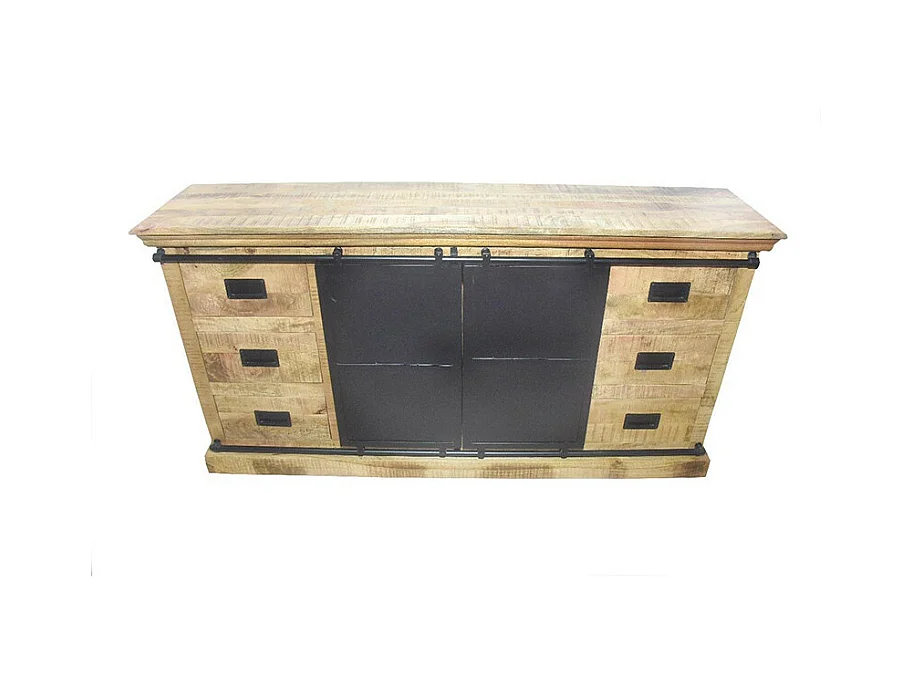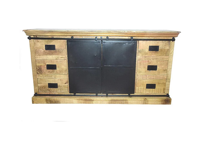Buffet 2 portes coulissantes 6 tiroirs Dehli manguier et métal