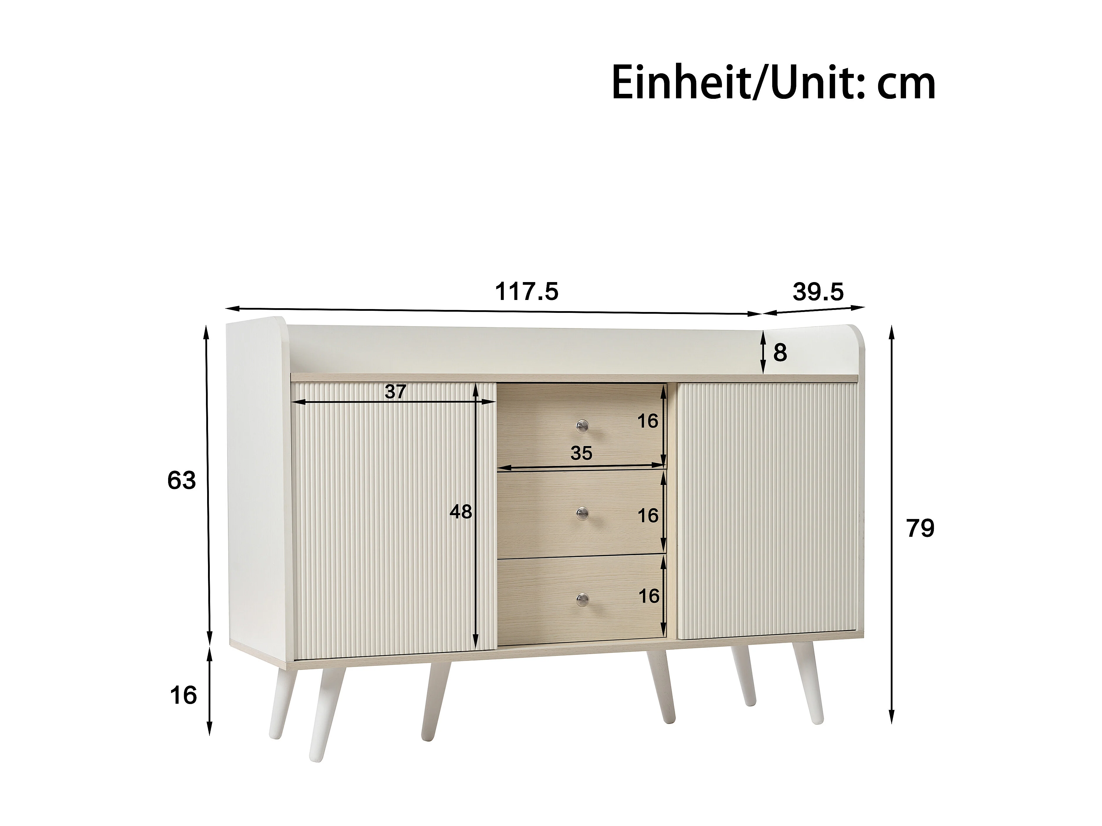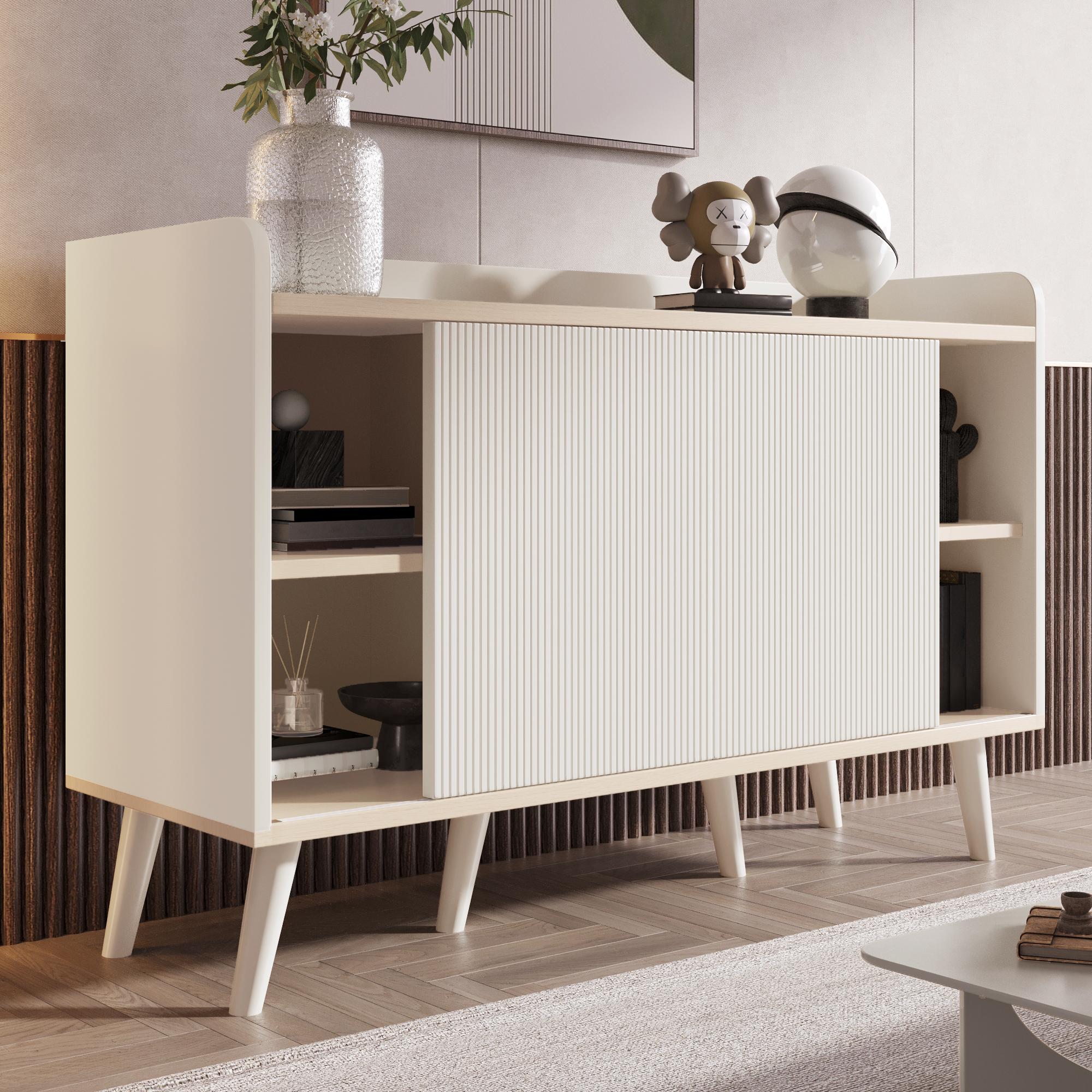 Buffet 2 Portes et 3 Tiroirs, Buffet Bahut Moderne en bois avec Etagère de Rangement, Meuble bas, Blanc