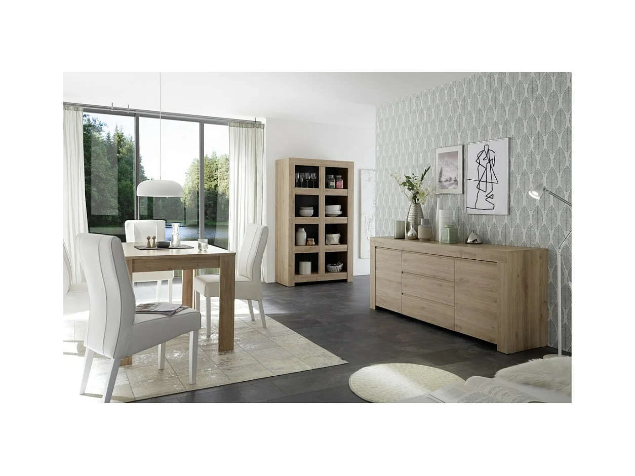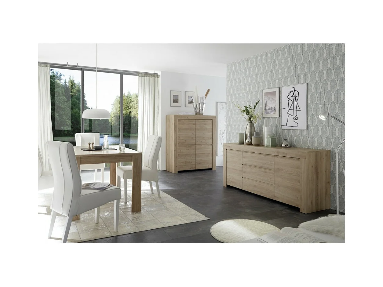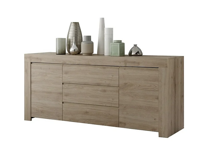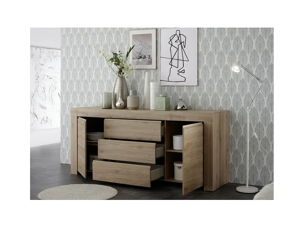 Buffet 2 portes et 3 tiroirs, collection ZEFIR, coloris chêne clair, parfait pour votre salon