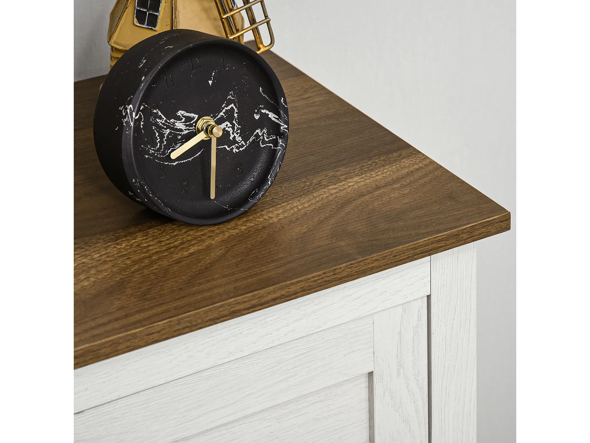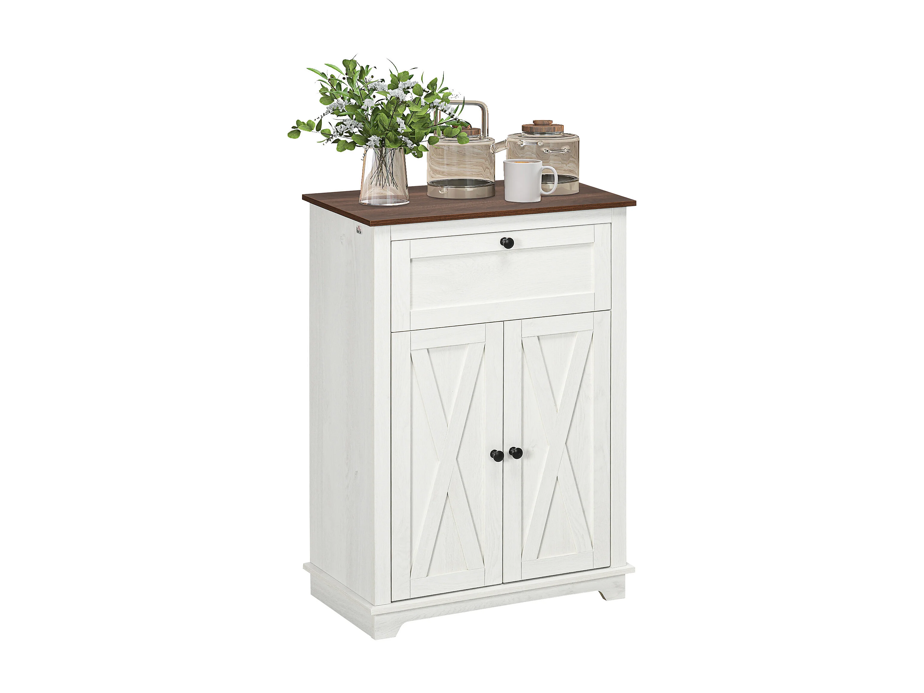 Buffet 2 portes étagère tiroir coulissant style rural chic façades portes à croisillons poignées métal noir blanc aspect bois