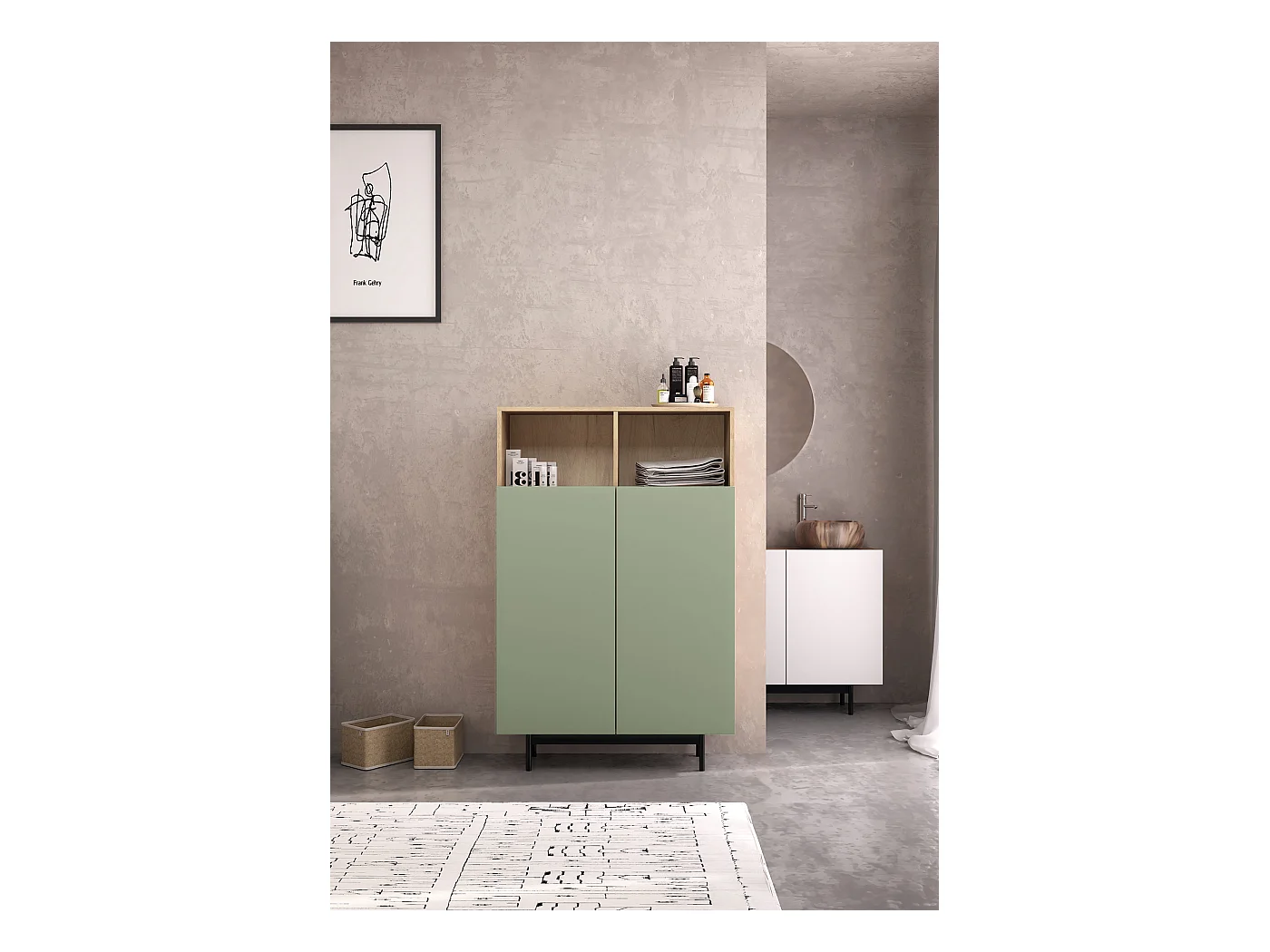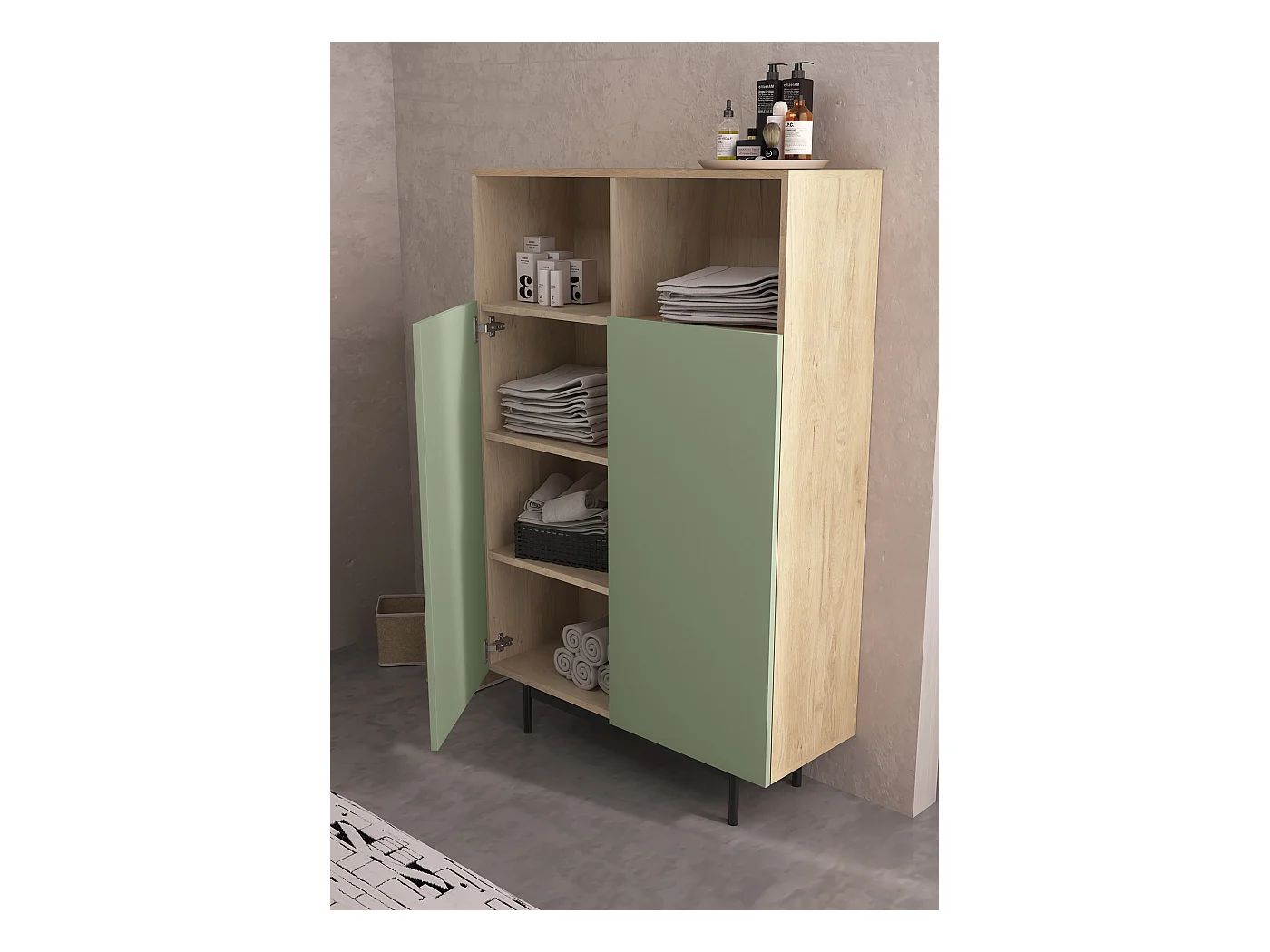 Buffet 2 portes - H140cm x L90cm x L34cm - chêne clair et vert - Printed