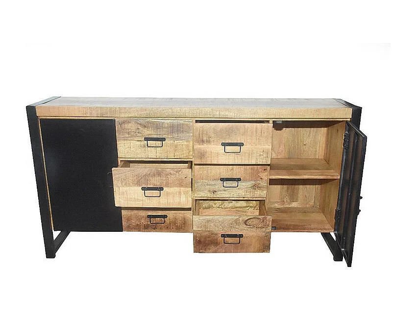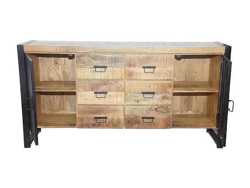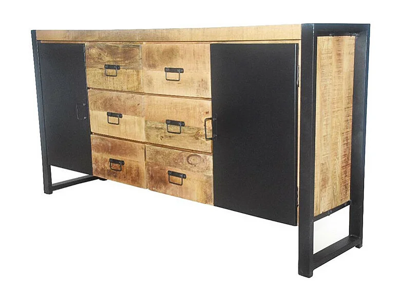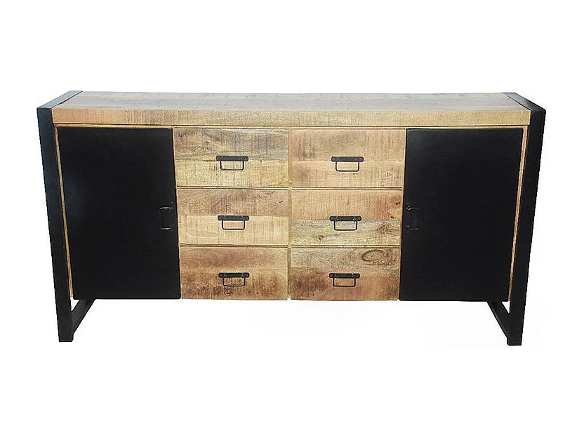 Buffet 2 portes métal 6 tiroirs Chennai manguier et métal