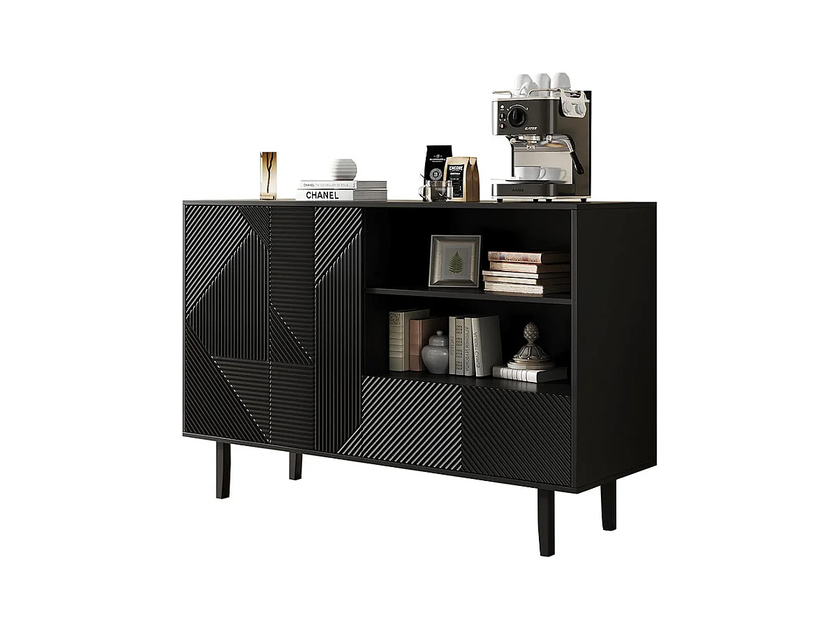 Buffet de rangement noir pour salon et salle à manger design unique avec porte originale meuble indépendant style minimaliste élégant