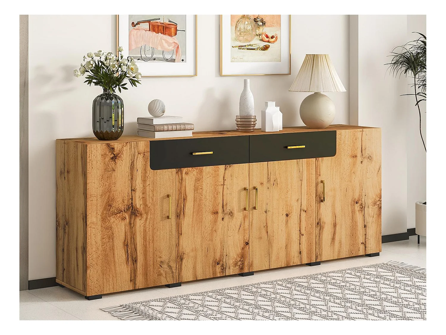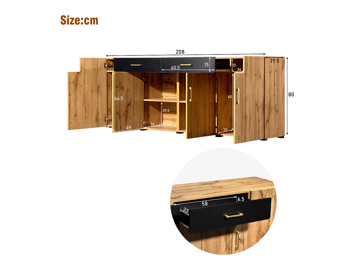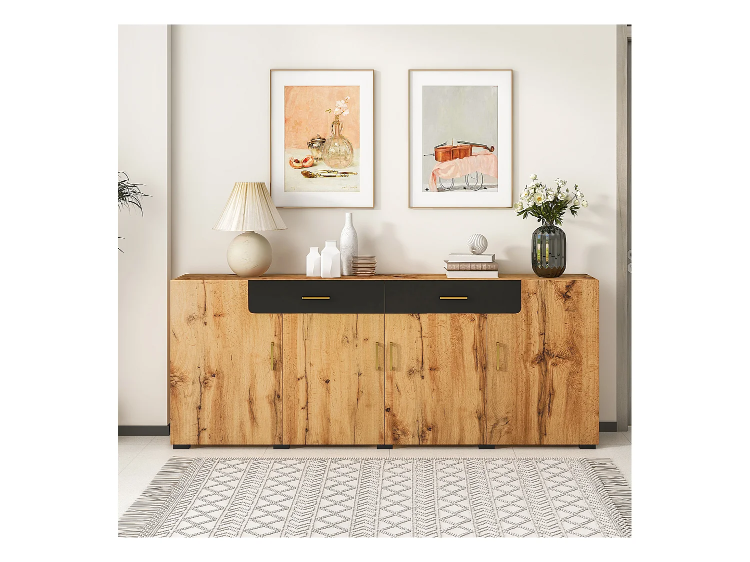 Buffet L 200cm - 4 portes avec 2 tiroirs - Naturel