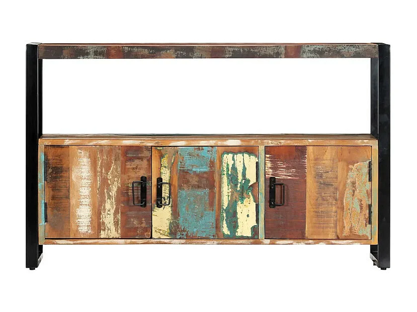Buffet 3 portes 1 étagère bois massif recyclé et métal noir Lau