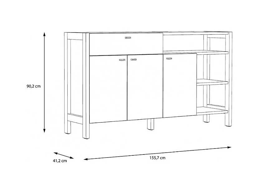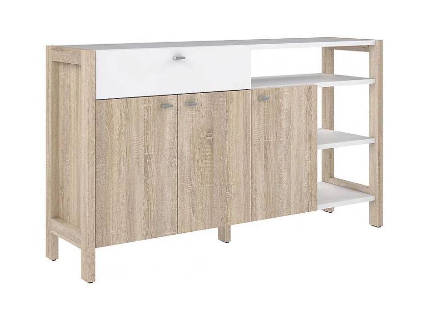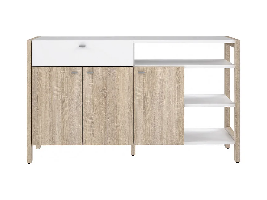 Buffet 3 portes 1 tiroir blanc et décor chêne clair - NORWAY