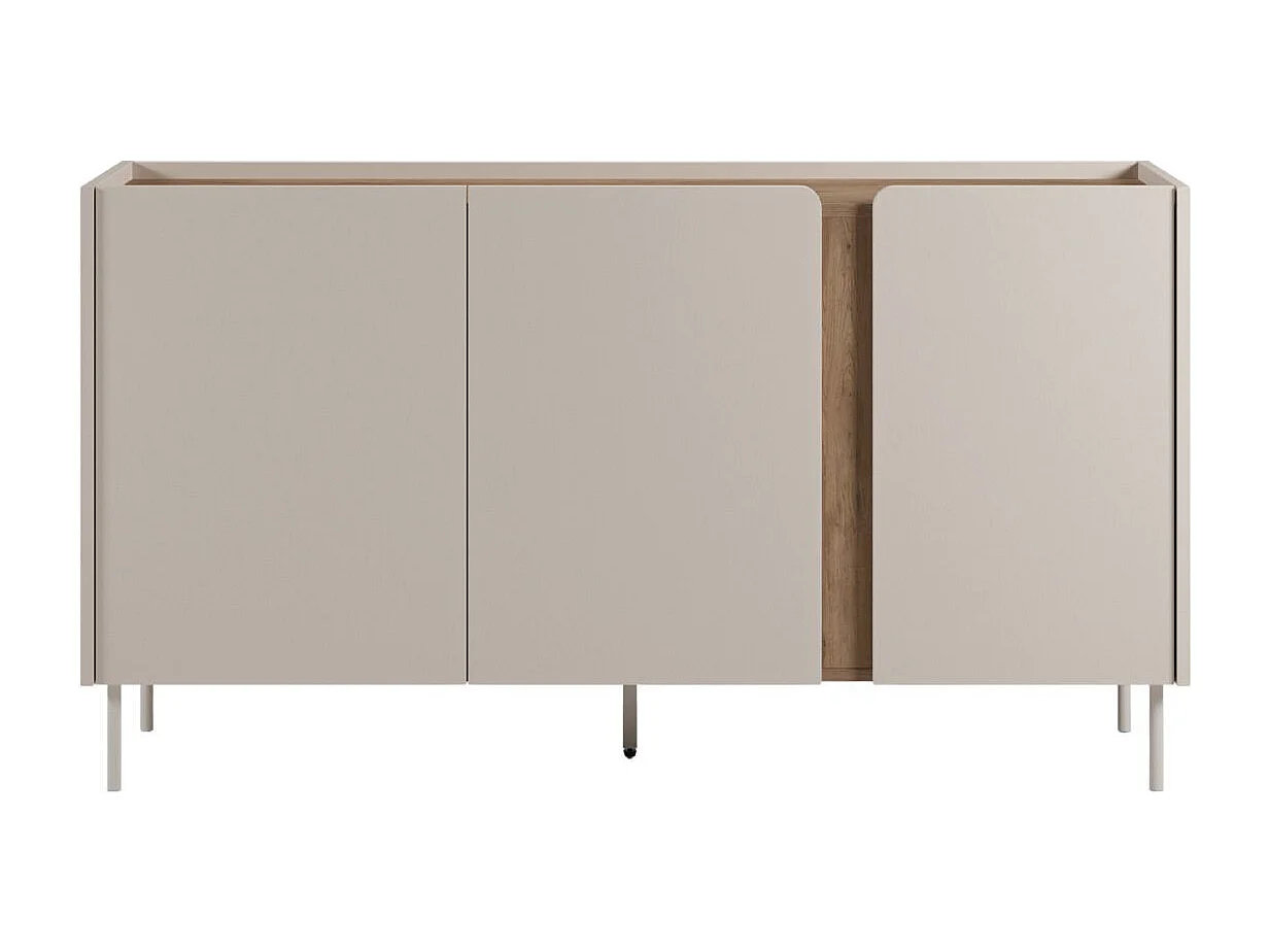 Buffet 3 portes 150cm en mélaminé beige et imitation bois avec découpe graphique bandeau - LIWENN