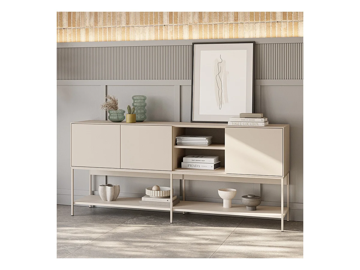 Buffet 3 portes 2 niches beige 180 cm - Zara
