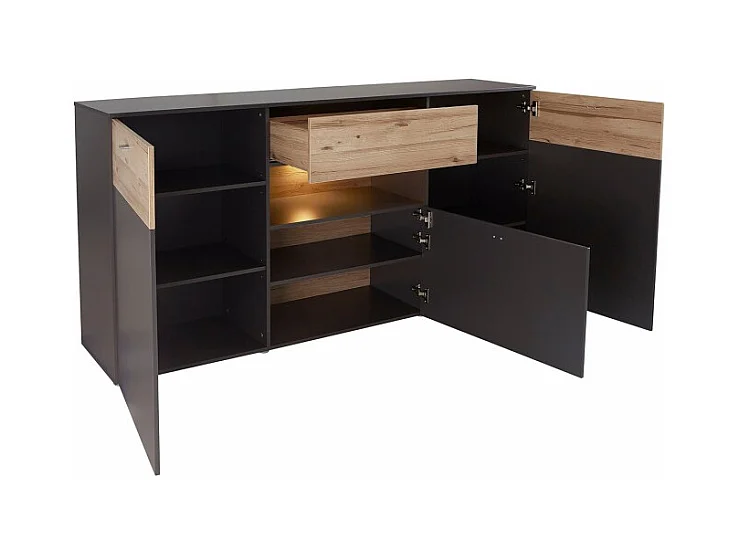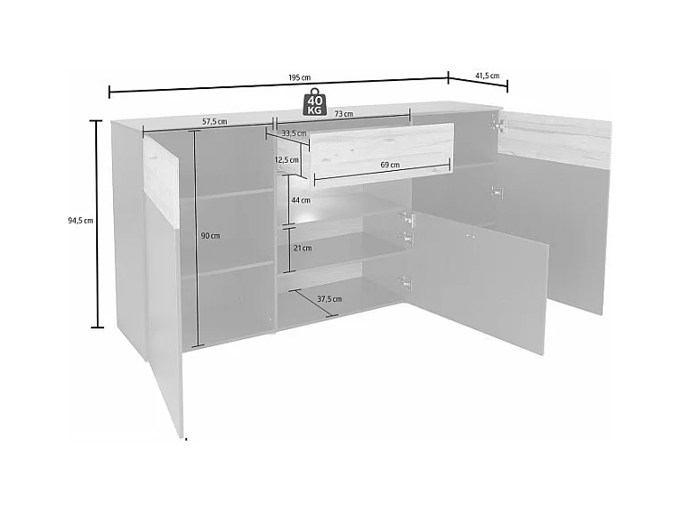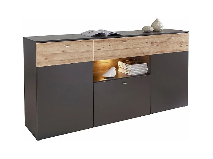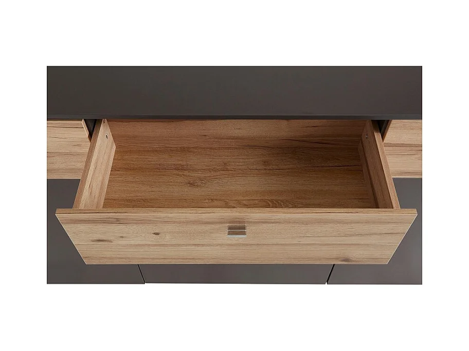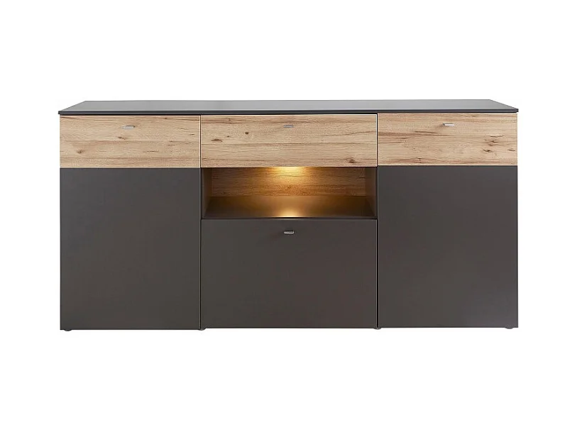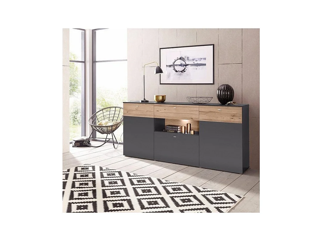 Buffet 195 cm 3 portes 3 tiroirs décor chêne clair et gris - MARBELLA