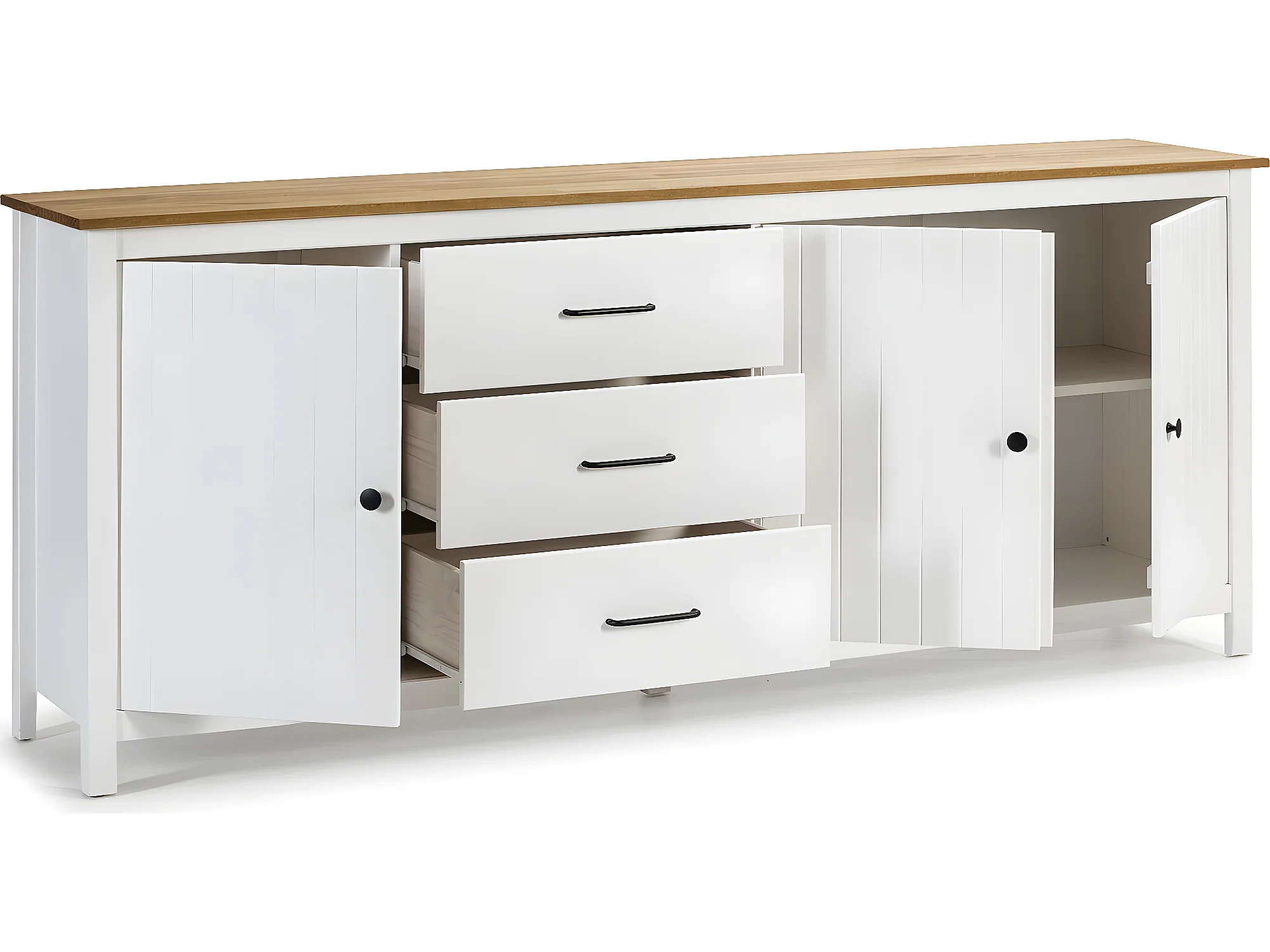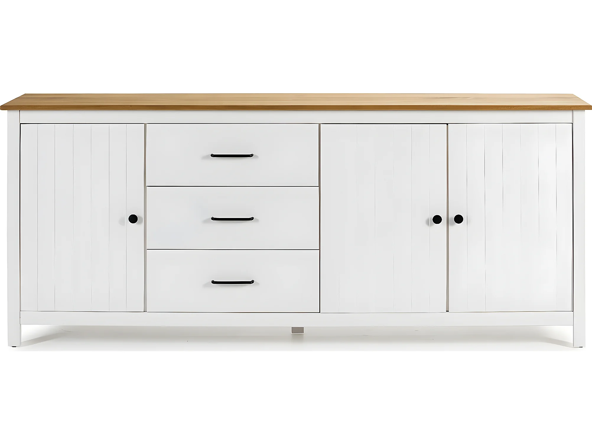 Buffet 3 portes 3 tiroirs en pin massif blanc 190 cm - Ida