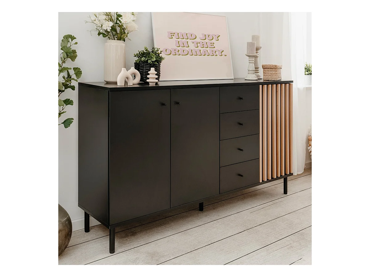 Buffet 3 portes, 4 tiroirs noir et effet chêne - Morgan