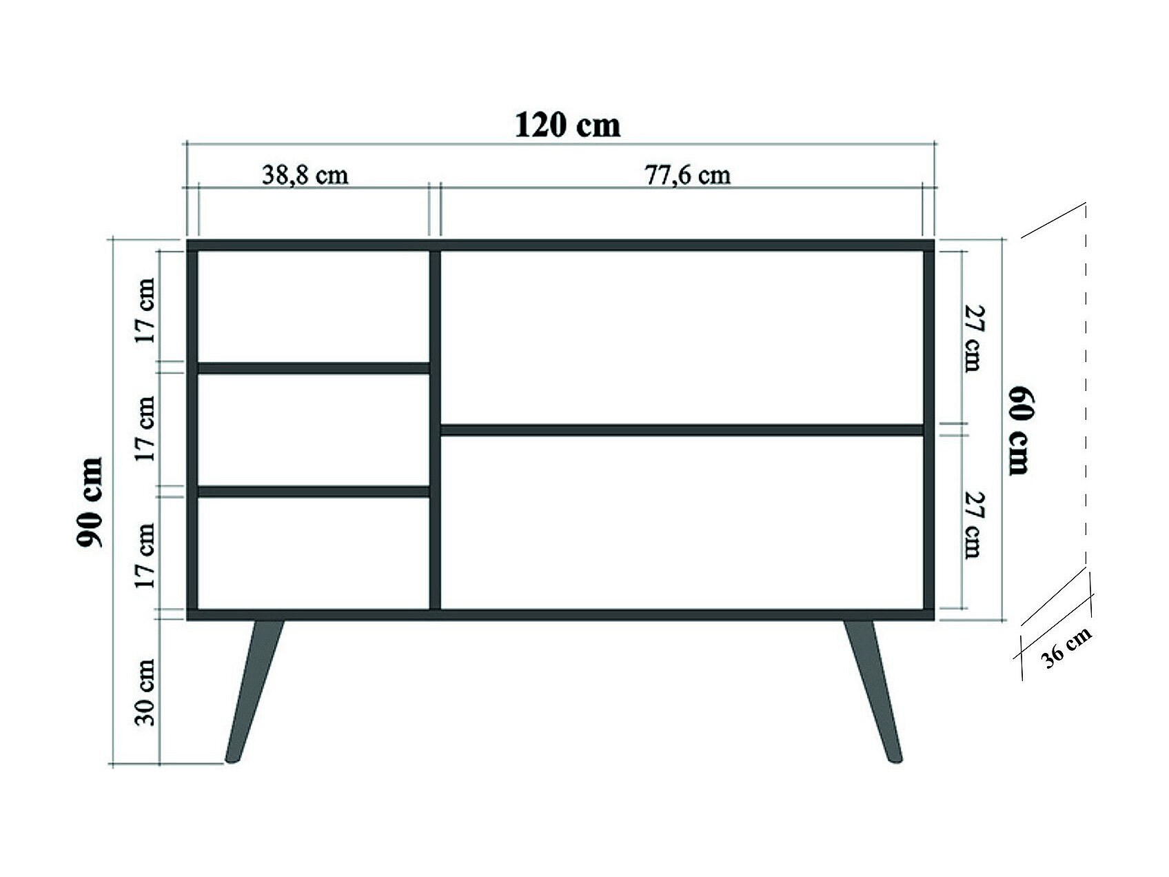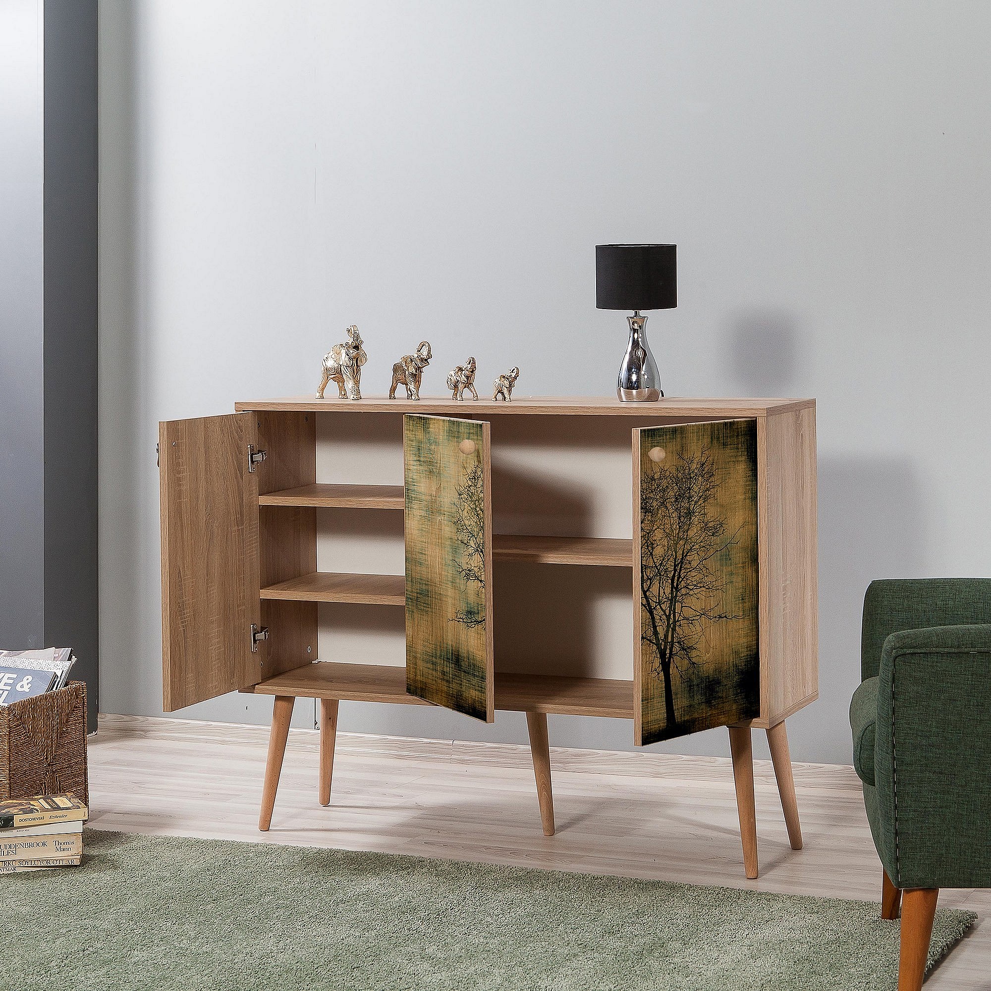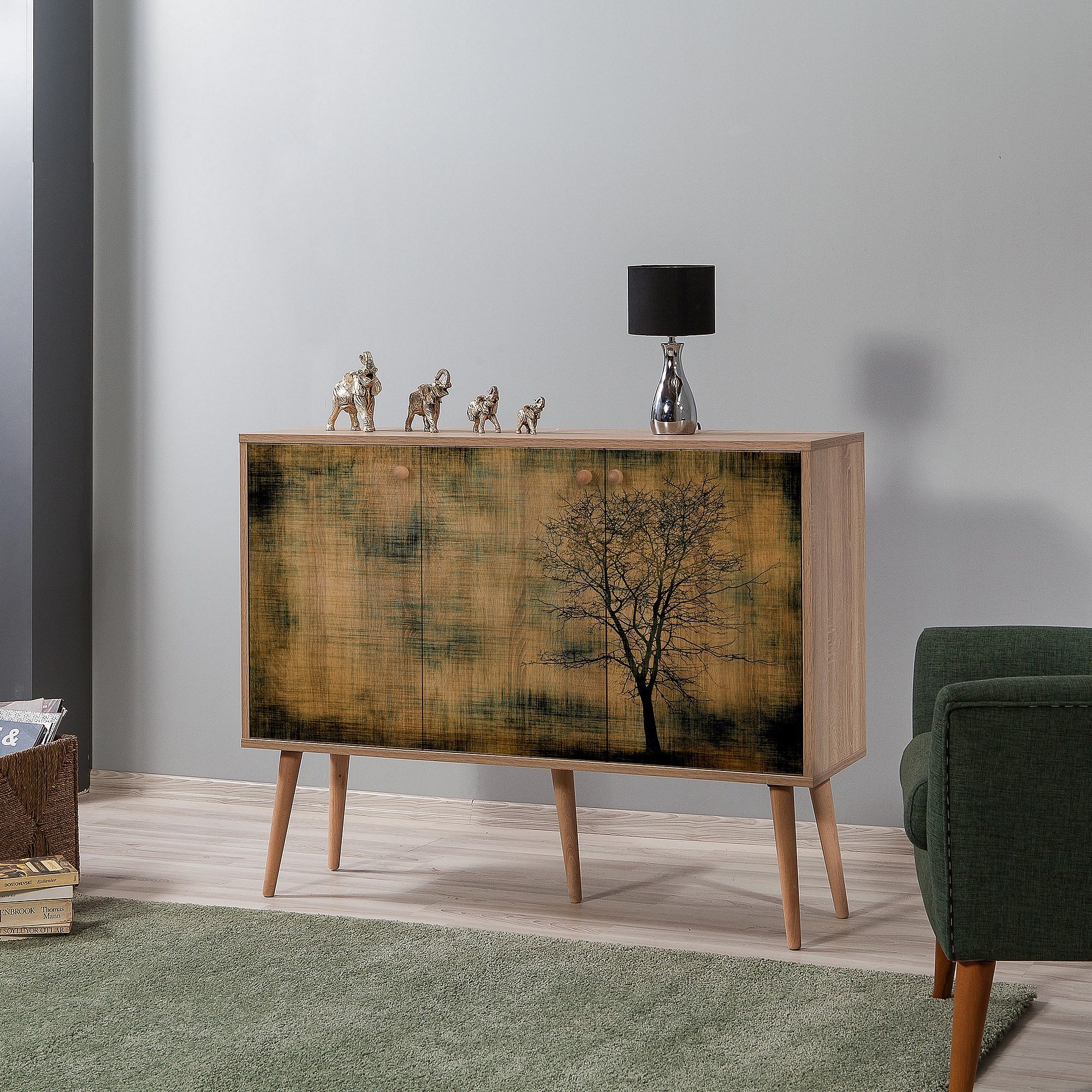 Buffet 3 portes Areva 120x90cm Motif Arbre Bois Naturel et Marron