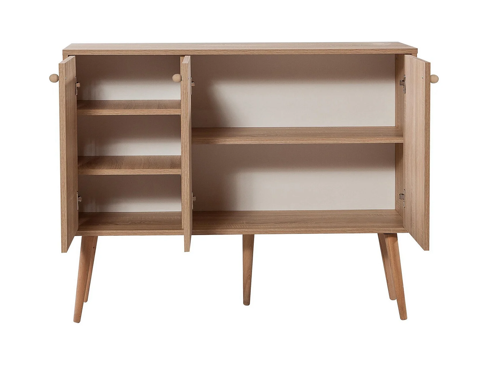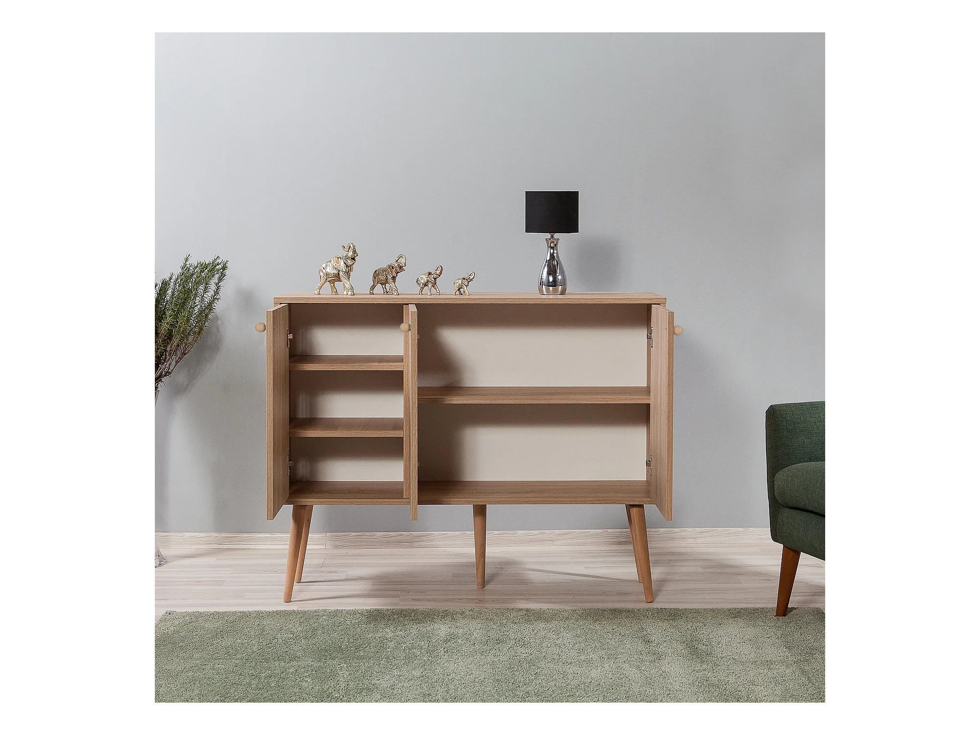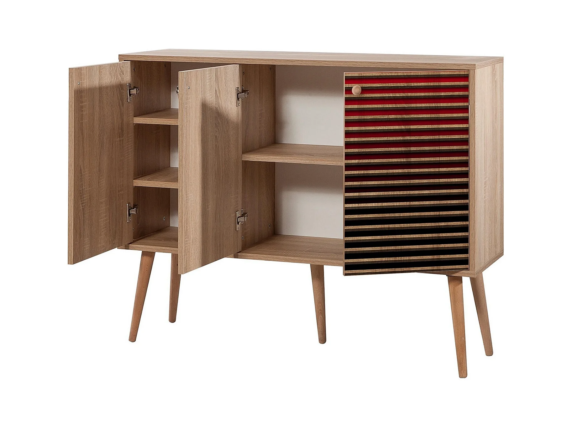 Buffet 3 portes Areva 120x90cm Motif Rayures Bois Naturel et Rouge