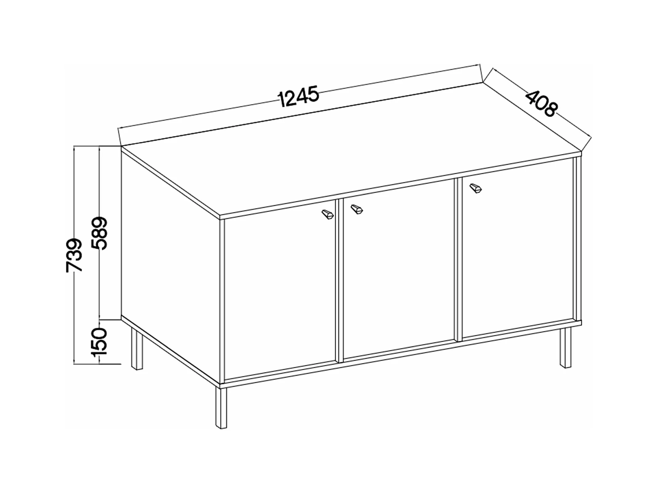 Buffet 3 portes avec pieds dorées - 125 cm - graphite noir - OKTIO