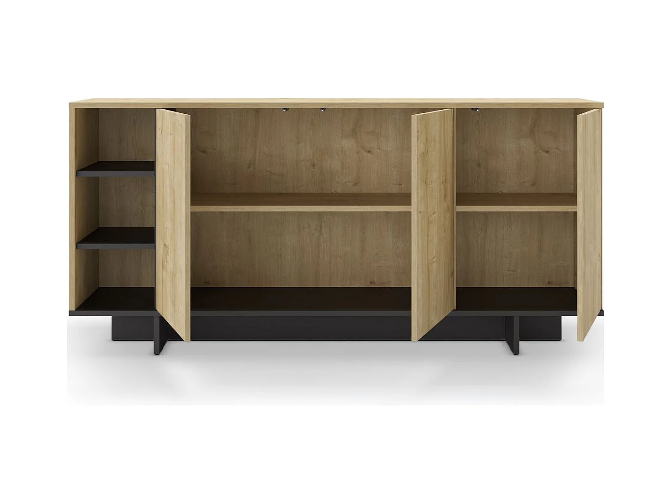 Buffet 3 portes décor chêne et noir 170 cm - Alicia