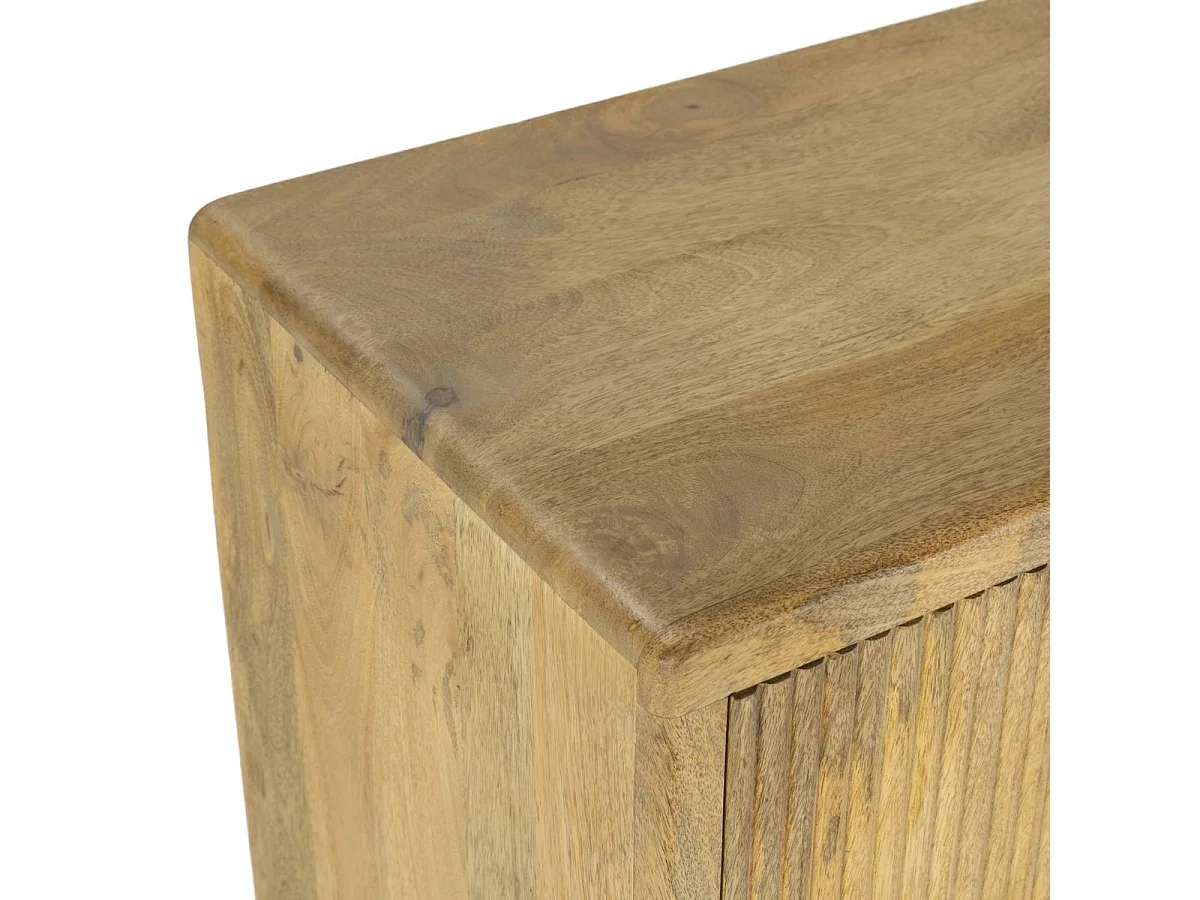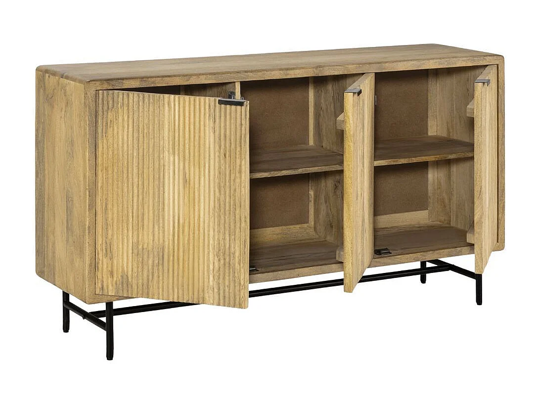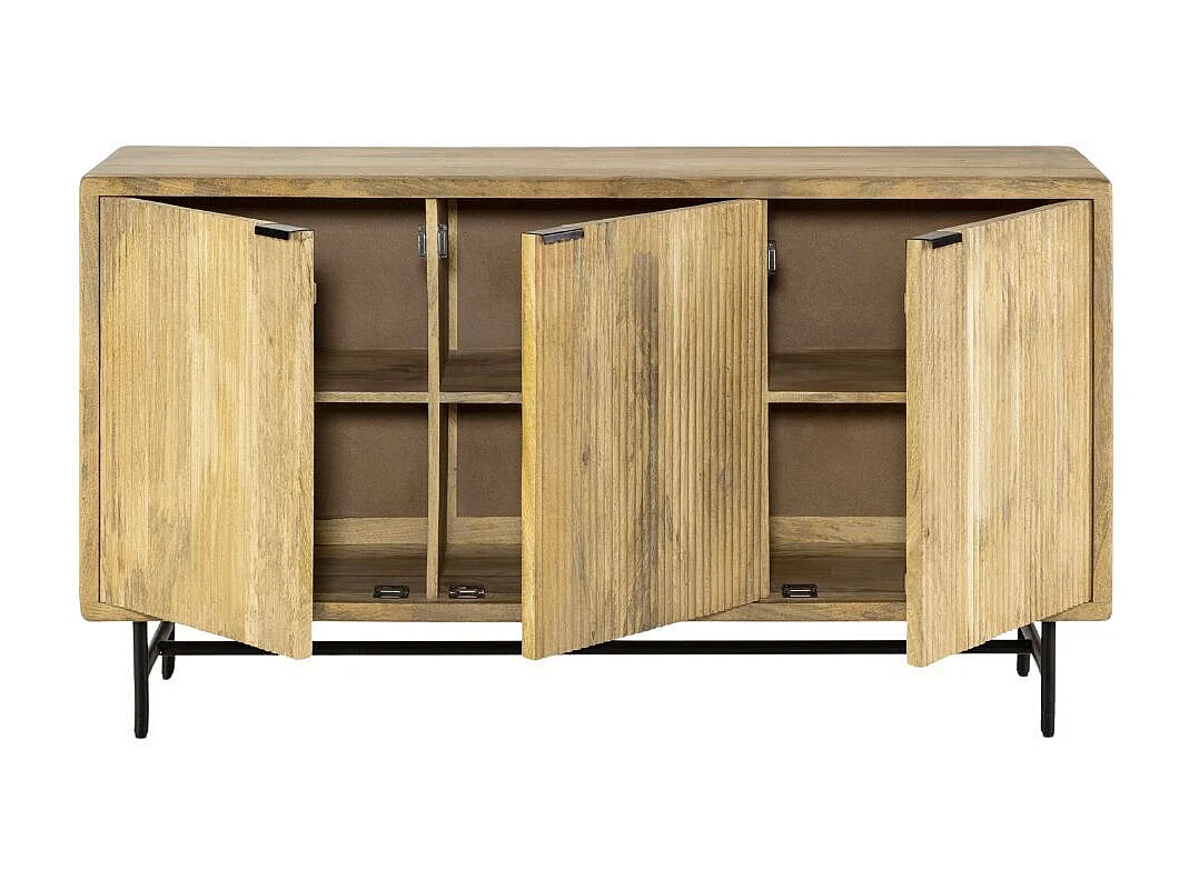 Buffet 3 portes en manguier massif relief graphique vertical piètement métal laqué noir - MELKA