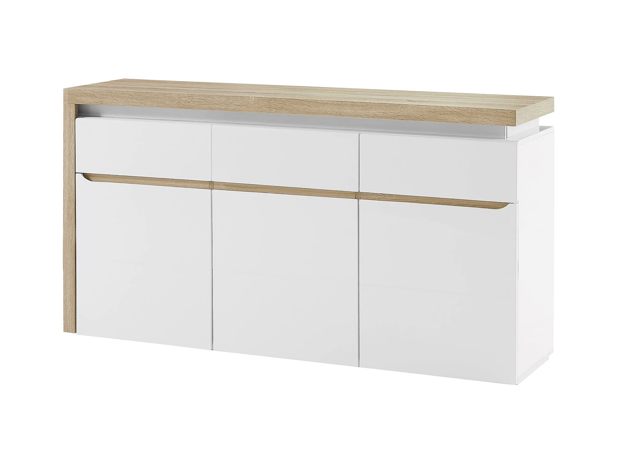 Buffet 3 portes et 3 tiroirs avec LEDs en MDF - Blanc laqué et Naturel - VADEMOSA