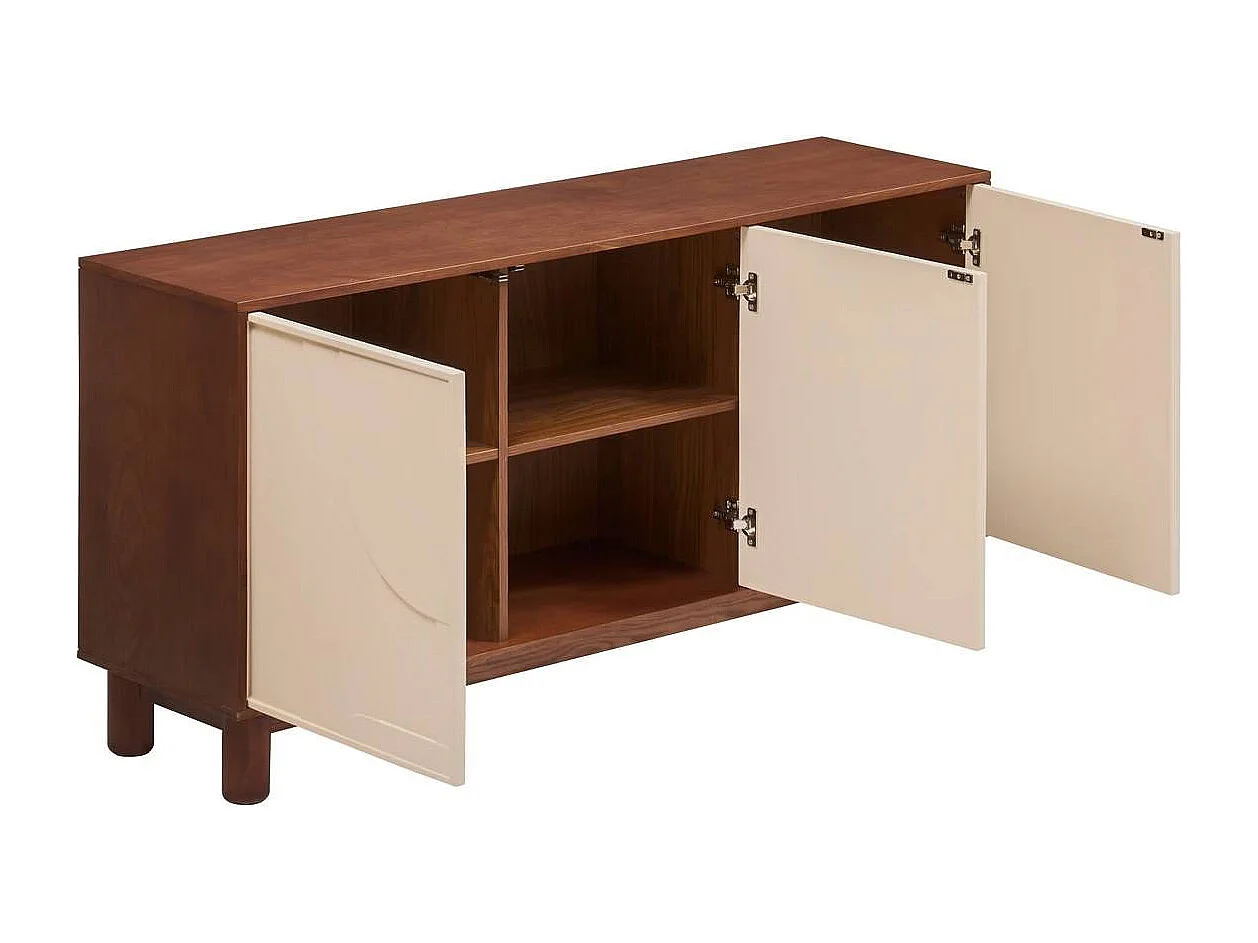 Buffet 3 portes et 6 étagères coloris effet noyer/beige - Longueur 150 x Profondeur 40 x Hauteur 75,5 cm