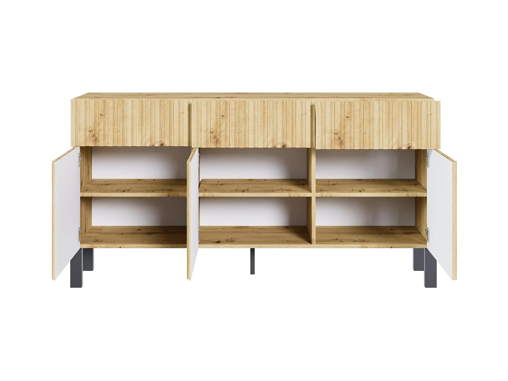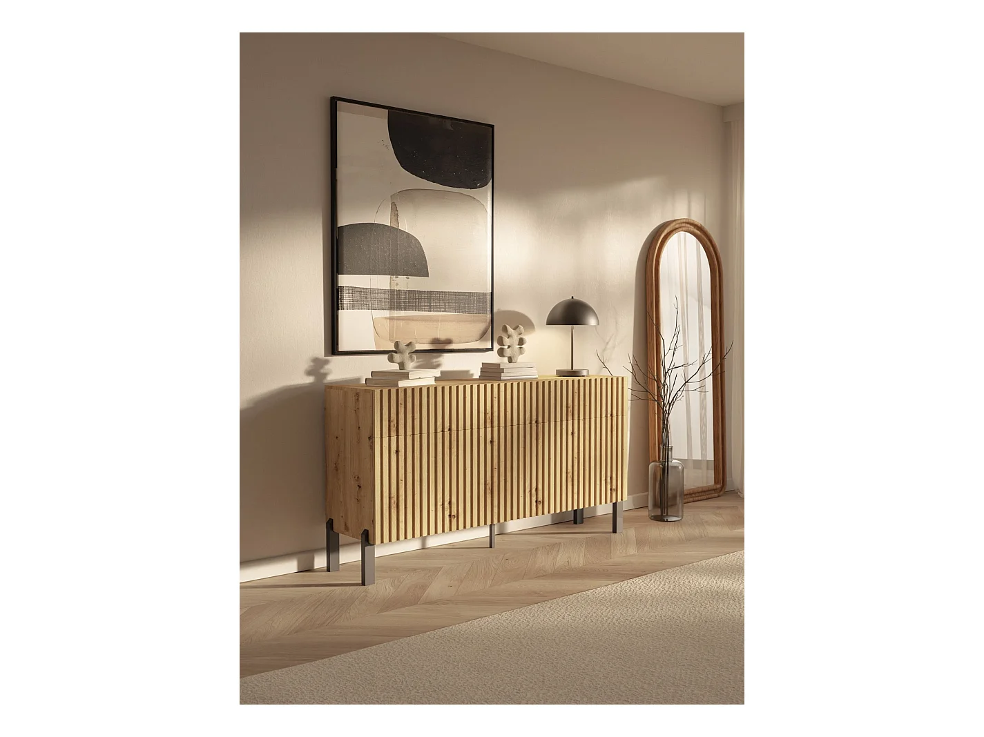 Buffet 3 portes – trois tiroirs et façade à lamelles – 154 cm – chêne artisan – TELIRE