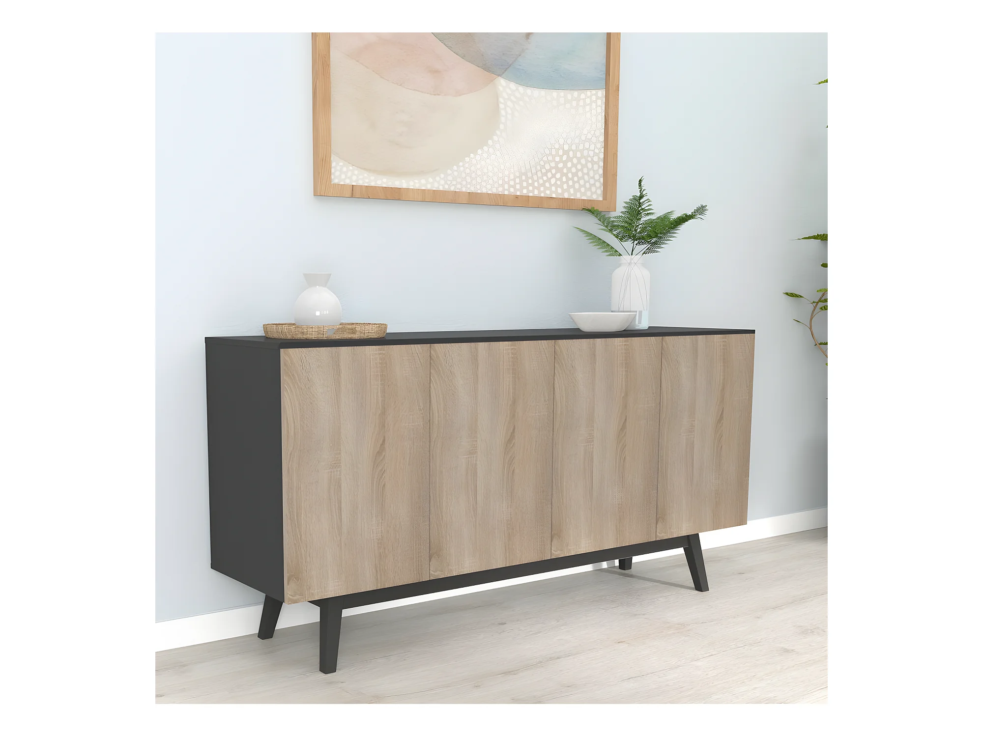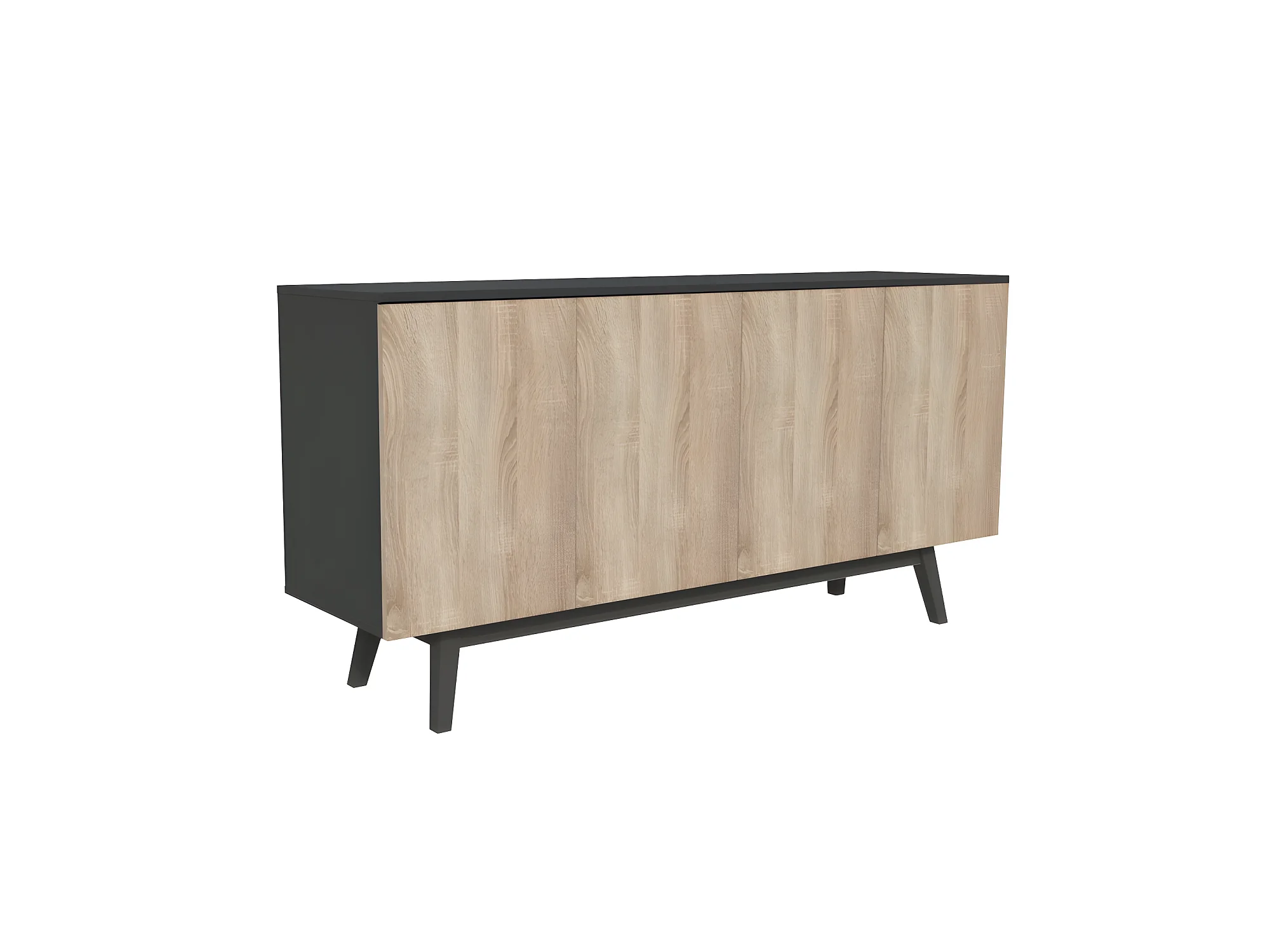 Bahut HOME 4 portes 2 tiroirs / Décor Noir et Chêne Blanchi
